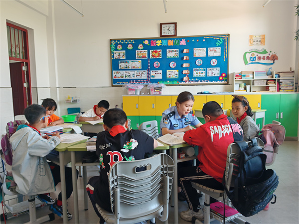 自2022年起,该所的两名女警郎蕊、刘珍便通过定期走访学校,了解学生的学习情况和家庭背景,为有需要的学生提供个性化的助学措施。家住英安镇英安村的明明今年10岁,父母常年外出务工,爷爷奶奶文化水平不高,很多时候没办法辅导明明的学习。去年,刘珍在入户走访时了解到明明的情况后,开始不定期地为他辅导功课,还给他买了学习用品,鼓励他好好学习。