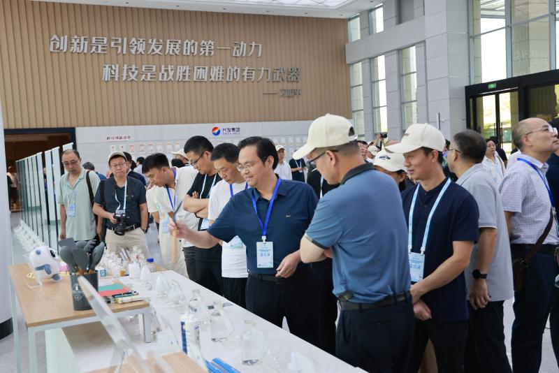 在湖北三峡实验室,嘉宾们认真聆听宜昌现代化工产业技术攻关、产品研发等情况介绍,观摩电子级氢氟酸、金属蚀刻液等产品。