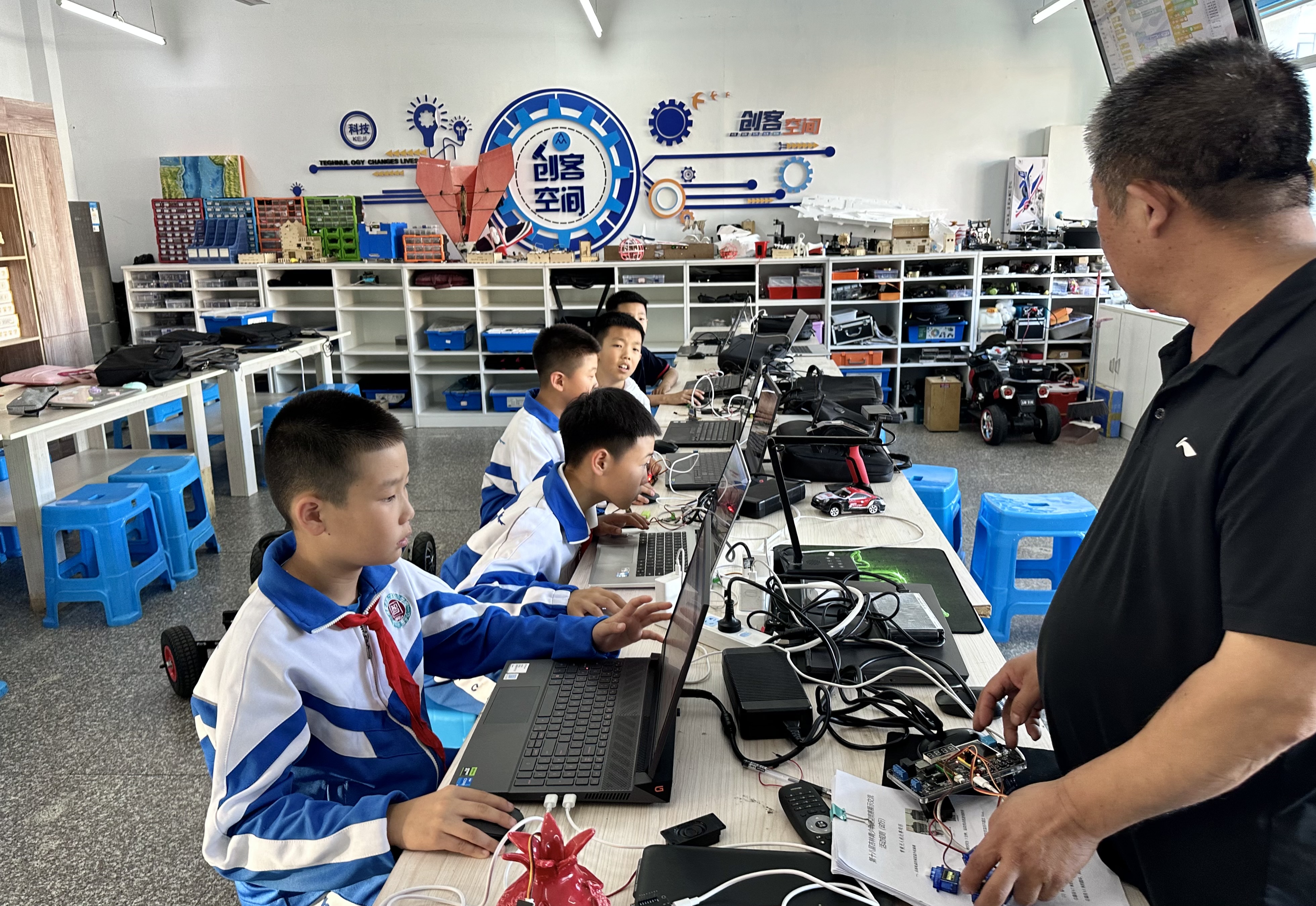 在科技室,孩子们自行设置的小程序,让“石榴”音响成为“三共四同”等理念的传播者;