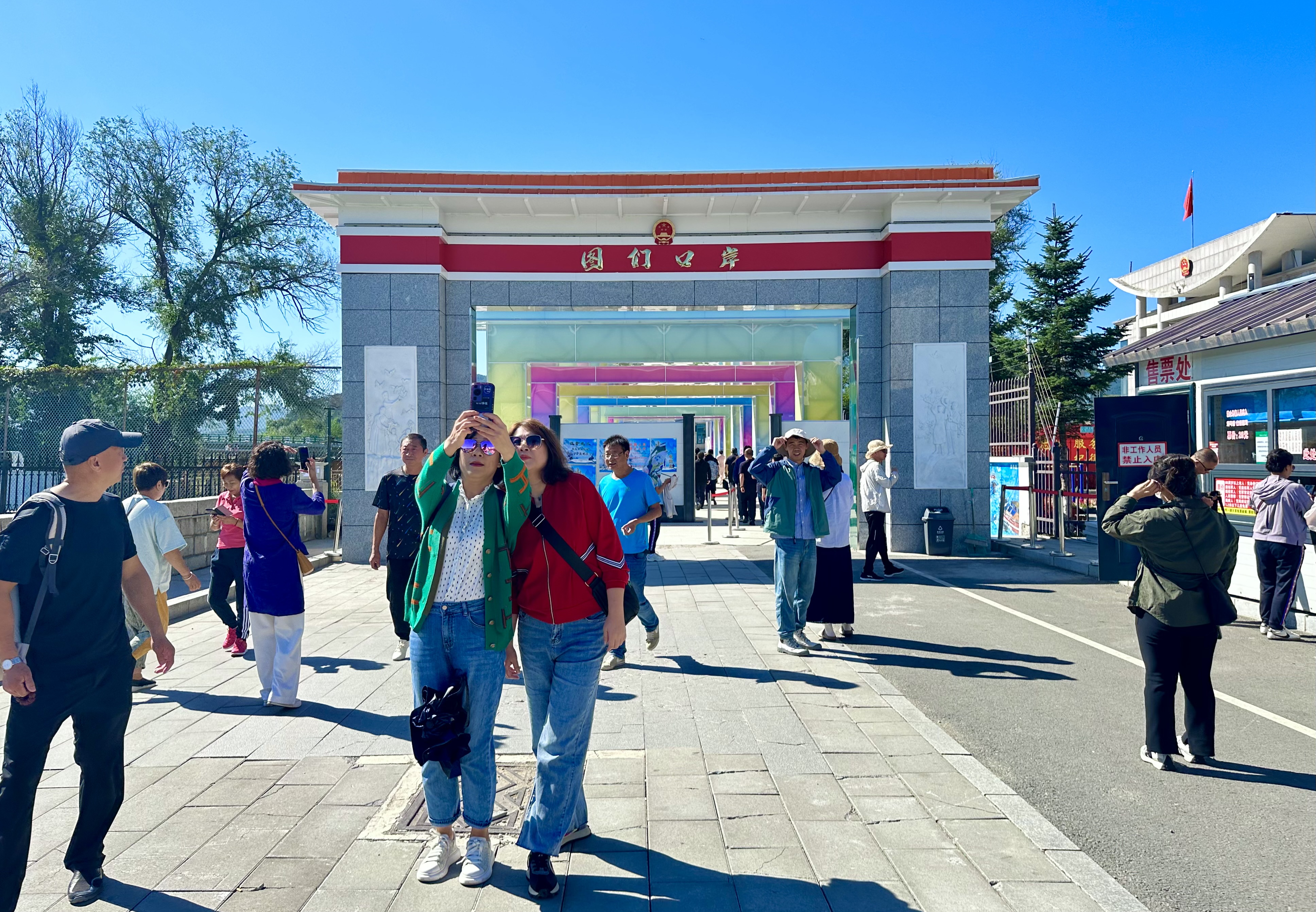 秋日的图们江边人流如潮,图们江广场热闹非凡。