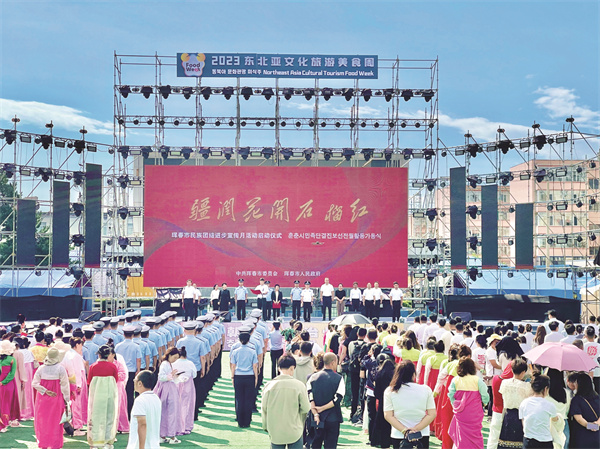 2023年9月1日,珲春市以“疆润花开石榴红” 为主题举办“民族团结进步宣传月”活动