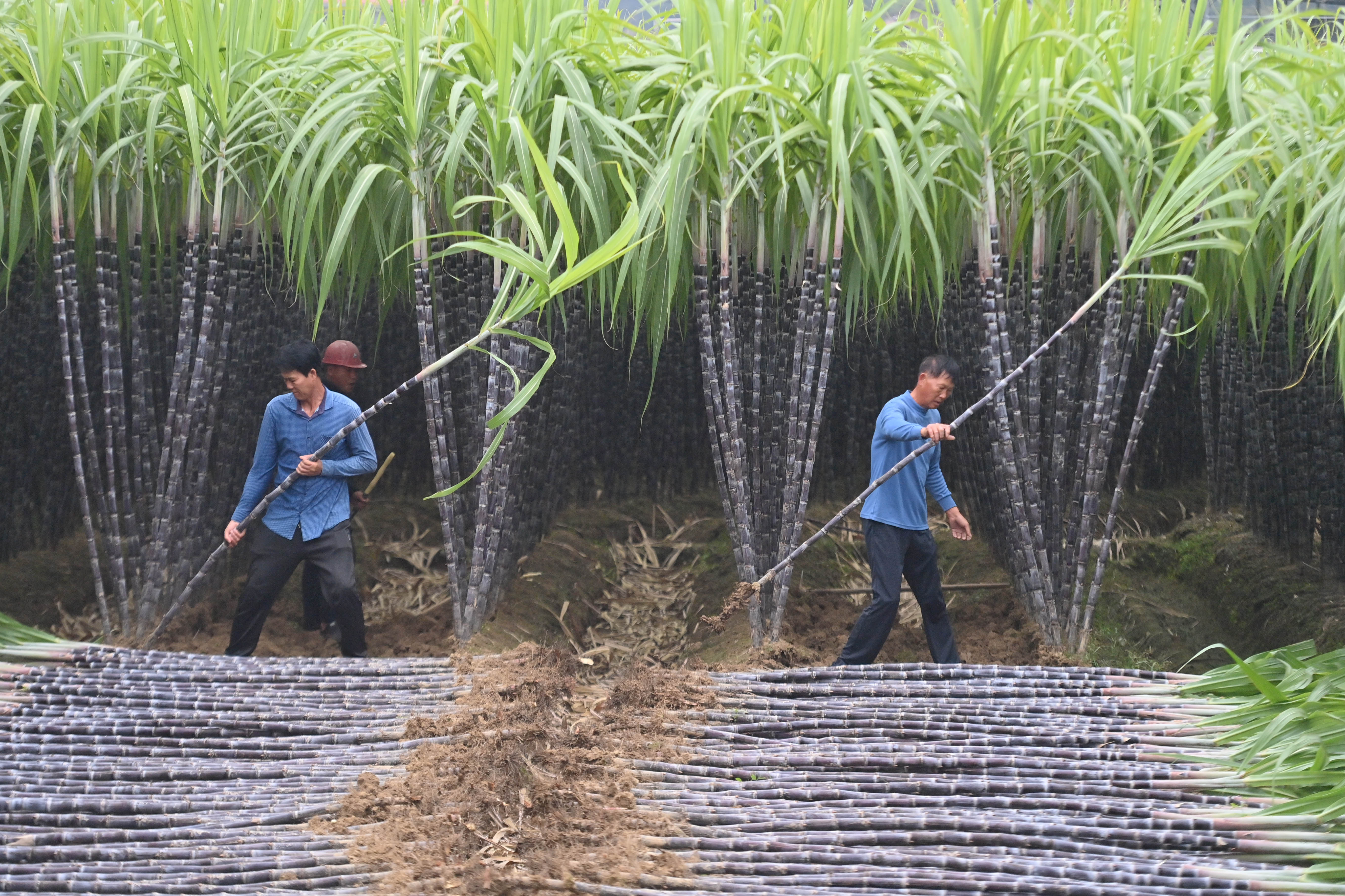 金秋时节,广西柳州市柳江区百朋镇果蔗种植基地迎来收获季,蔗农们积极收割抢运,加紧供应市场。