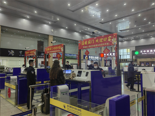 当天执勤的珲春出入境边防检查站执勤一队民警马光介绍,该站在全力保障旅客顺畅通关的同时,还专门成立了“边检送福小分队”,将具有中国传统特色的“红灯笼”“中国结”“灵蛇玩偶”等新春饰品和温馨祝福送到旅客的手上,让广大出入境人员特别是归国返乡人员感受到祖国大家庭的温暖,进一步展现珲春边检站移民管理队伍“公正、专业、友好、文明”的新形象。