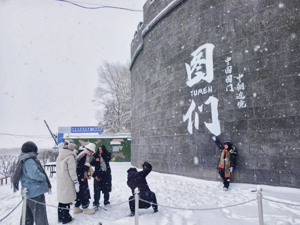 1月28日除夕,春节假期首日,图们市迎来降雪,游客从全国各地而来,尽情欣赏边疆雪景,到边境线上的景区景点打卡,领略不一样的风土人情。