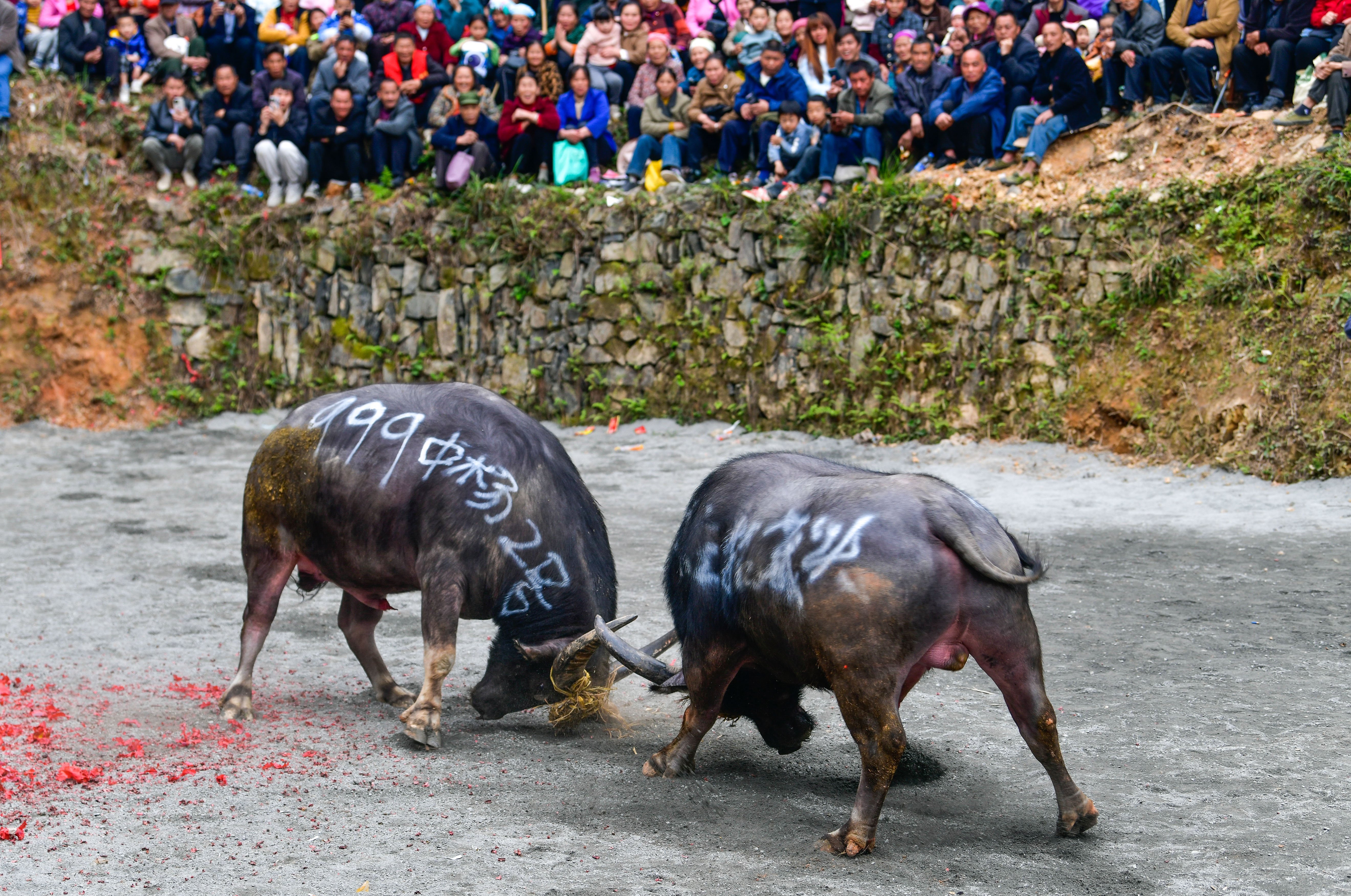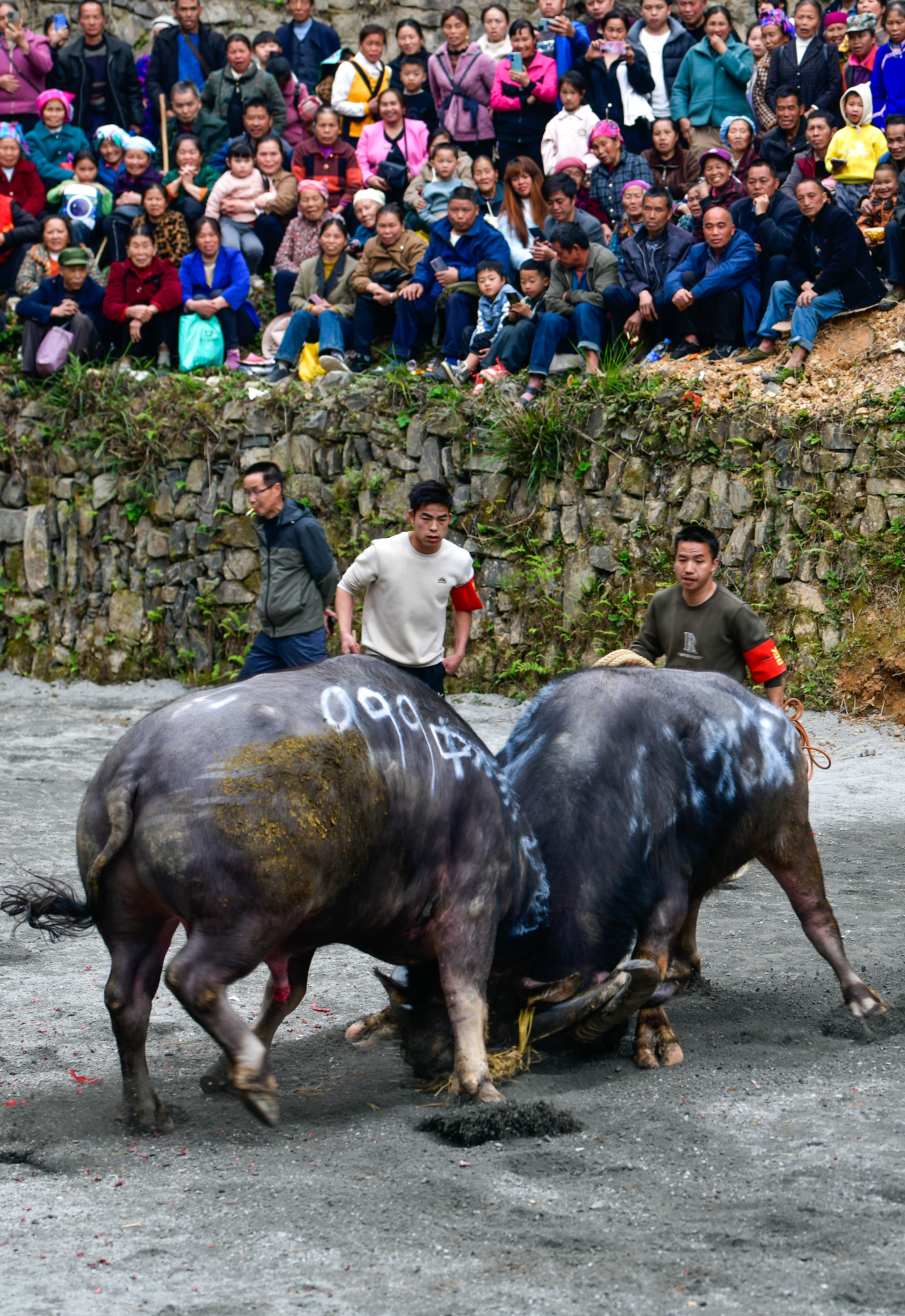 4月6日,贵州省黔东南苗族侗族自治州锦屏县固本乡举办2025年新民片区三月初九牯藏节斗牛民俗活动,来自各苗乡侗寨的人们齐聚斗牛塘,斗牛欢庆牯藏节。