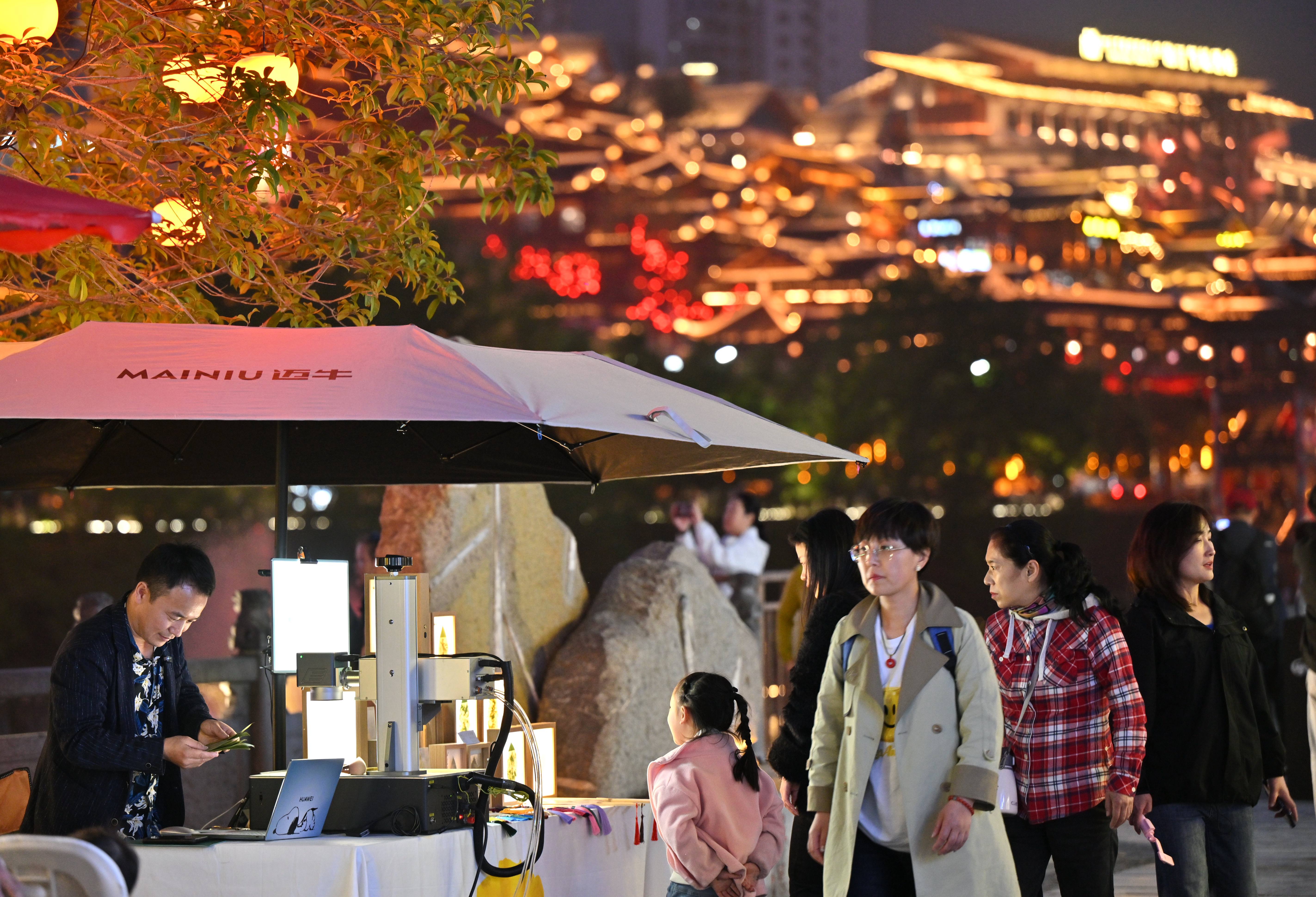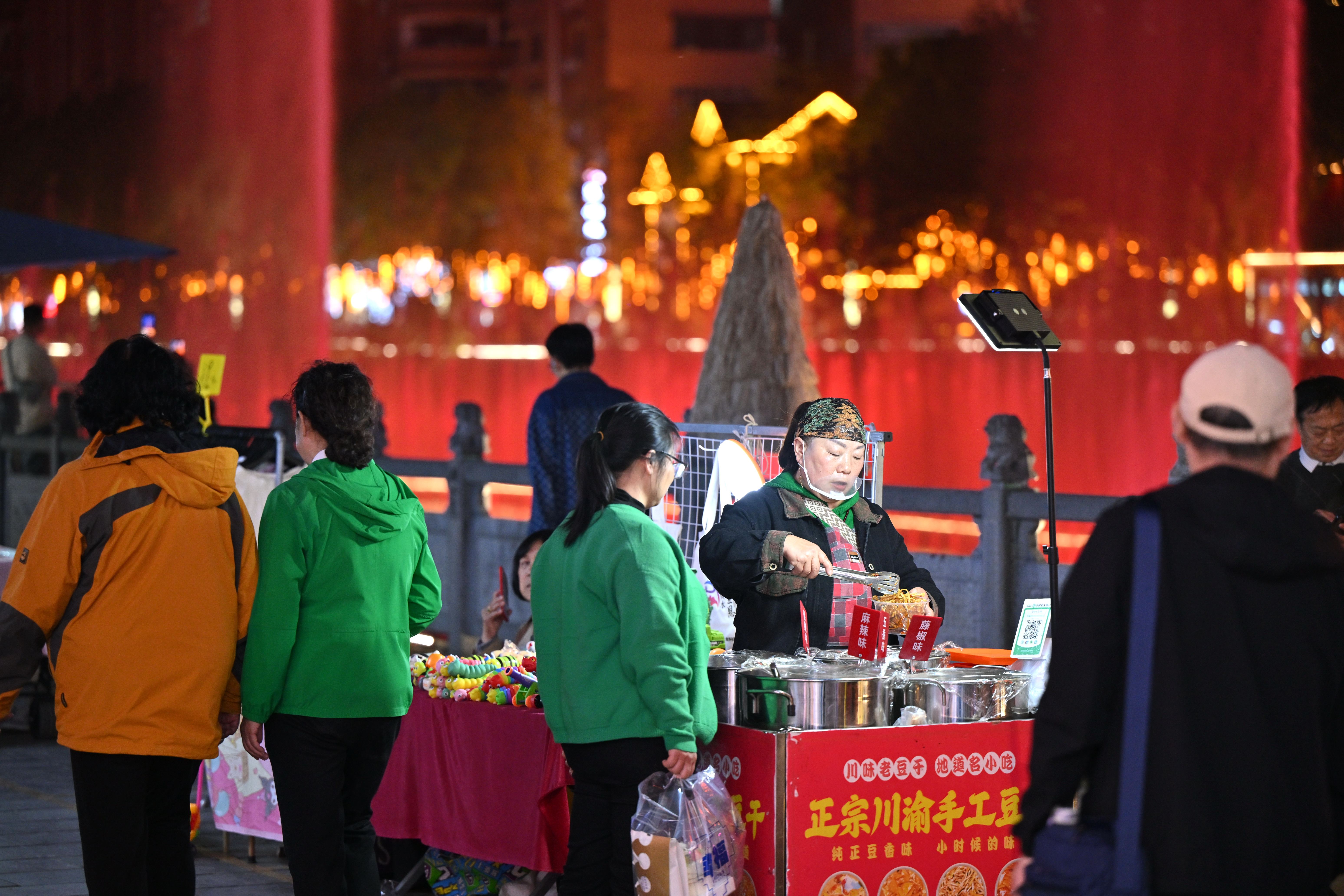 夜幕降临,在湖北省恩施土家族苗族自治州宣恩县城区沿贡水河两岸的城市主通道上,摊贩每晚只需一元租金,便可在规划区域内获得一个地摊摊位的夜间经营权。