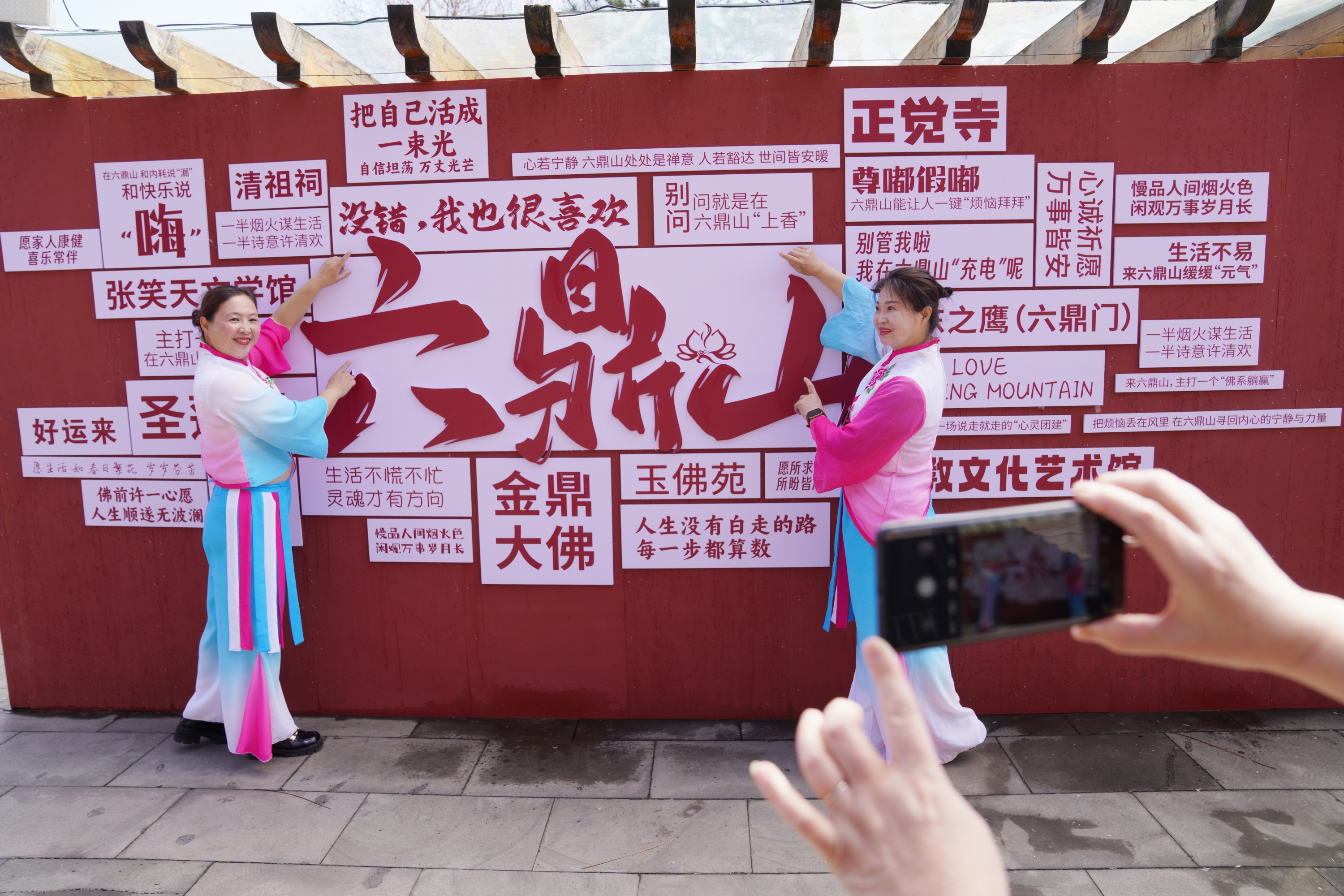 在景区入口处,游客排起长龙般的队伍,他们身着鲜艳的服装,兴高采烈地尽情饱览六鼎山的春色美景,特别是六鼎山传统文化游园月系列活动,更为八方游客呈现一场跨越时空的文化盛宴。