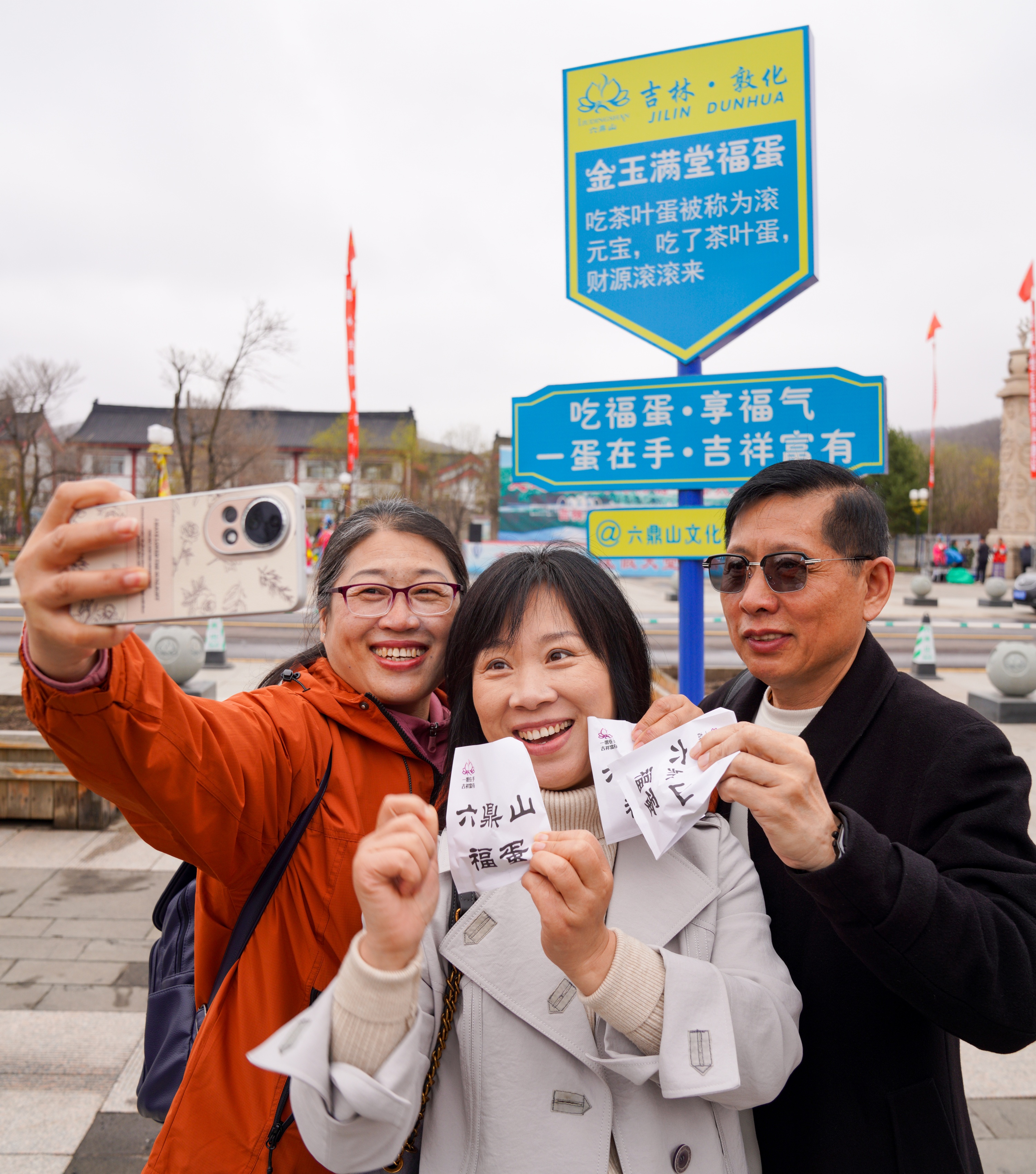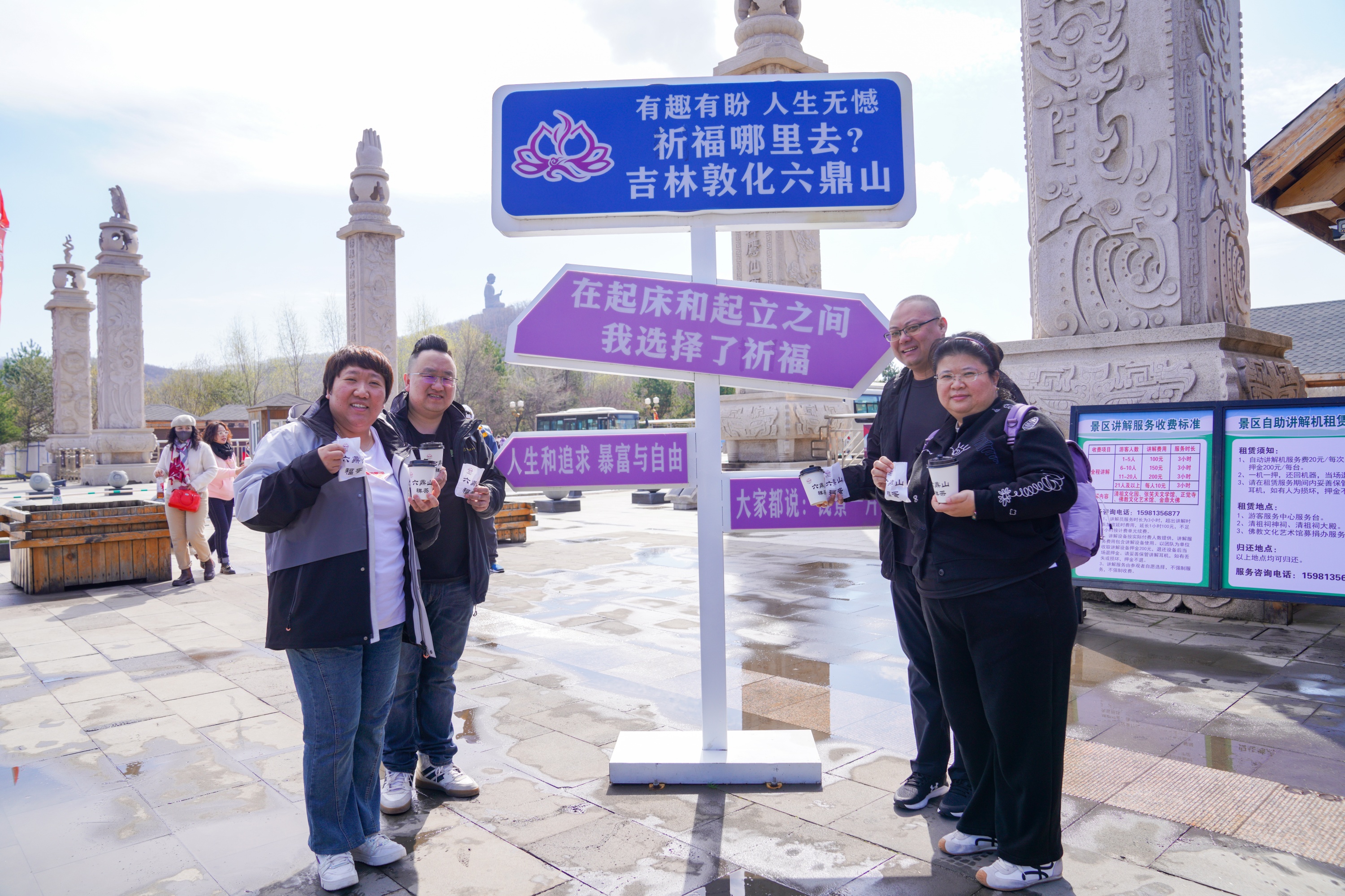 为提升宣传度和影响力,景区还在“抖音平台”推出了“直播套票赠送印有六鼎山标志的手串、帆布袋、钥匙扣、祈福金卡”活动,吸引了省内外广大亲子家庭及年轻群体的到来。另外,清祖祠设立“传统文化体验站”——长白山神祠,提供满服、汉服、韩服等服饰租赁及文创纪念品销售等服务,以“文化+旅游”为引擎,将渤海国历史、满族民俗等元素深度融入旅游产品设计,让游客在沉浸体验中感知文化厚度,持续释放文旅消费活力,深度打造更富生命力的六鼎山特色“文化IP”。