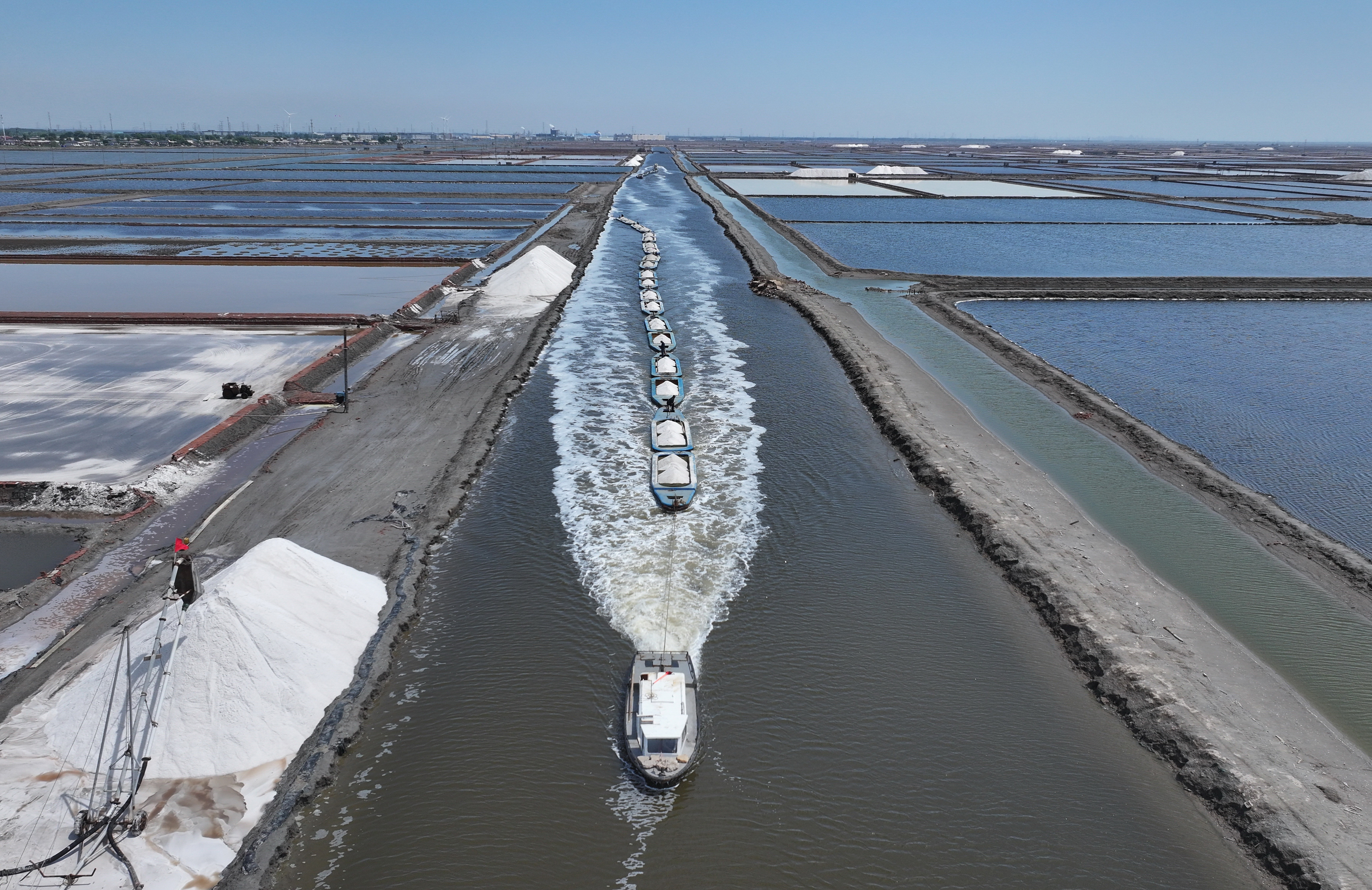 近日,河北省唐山市曹妃甸区南堡盐场的35万亩盐田迎来春盐收获期,工人利用晴好天气加紧收获,盐田里到处是繁忙工作景象。据介绍,南堡盐场是我国长芦盐区海盐生产基地之一,当地依托盐资源丰厚优势,大力发展盐化工产业,助推经济发展。