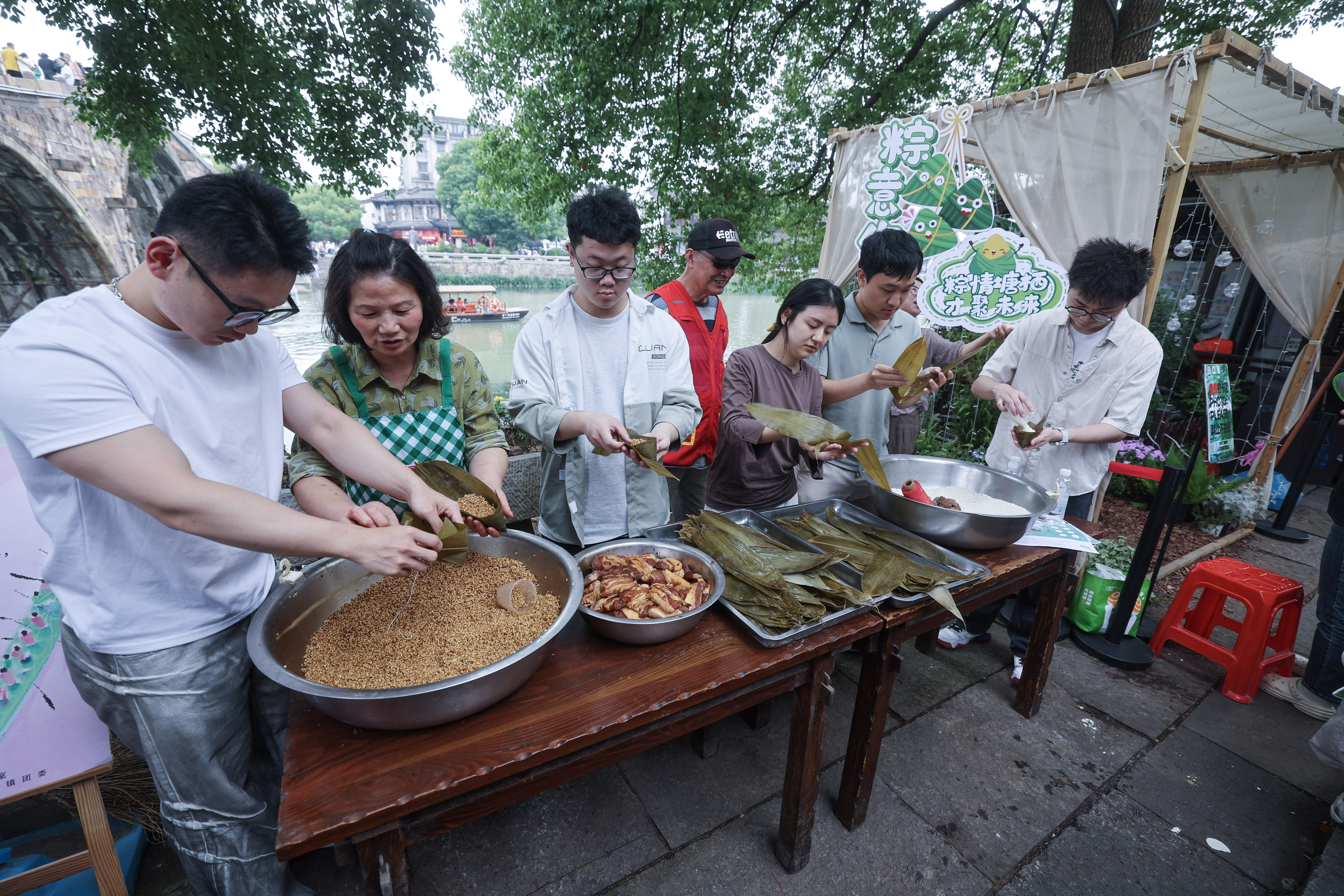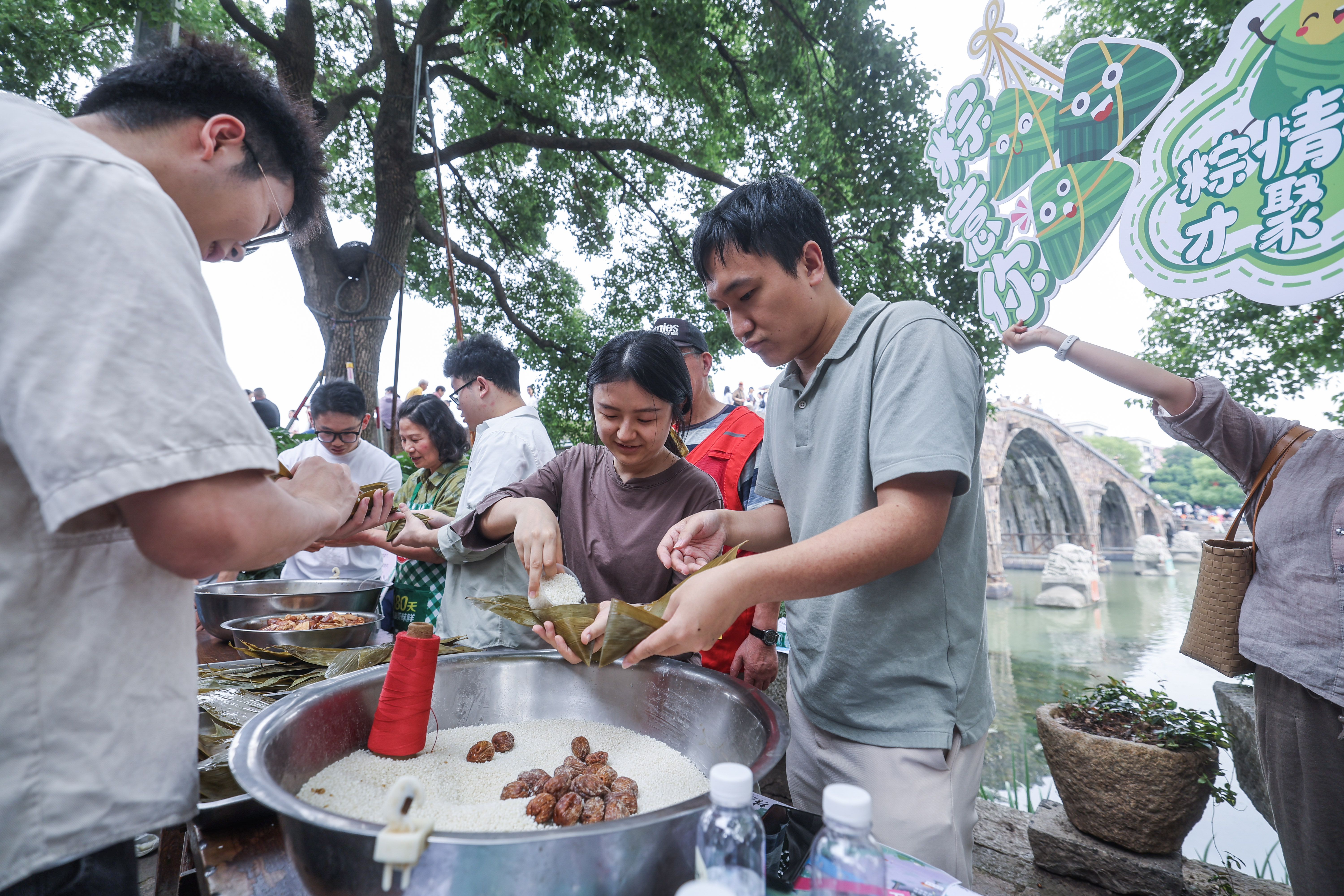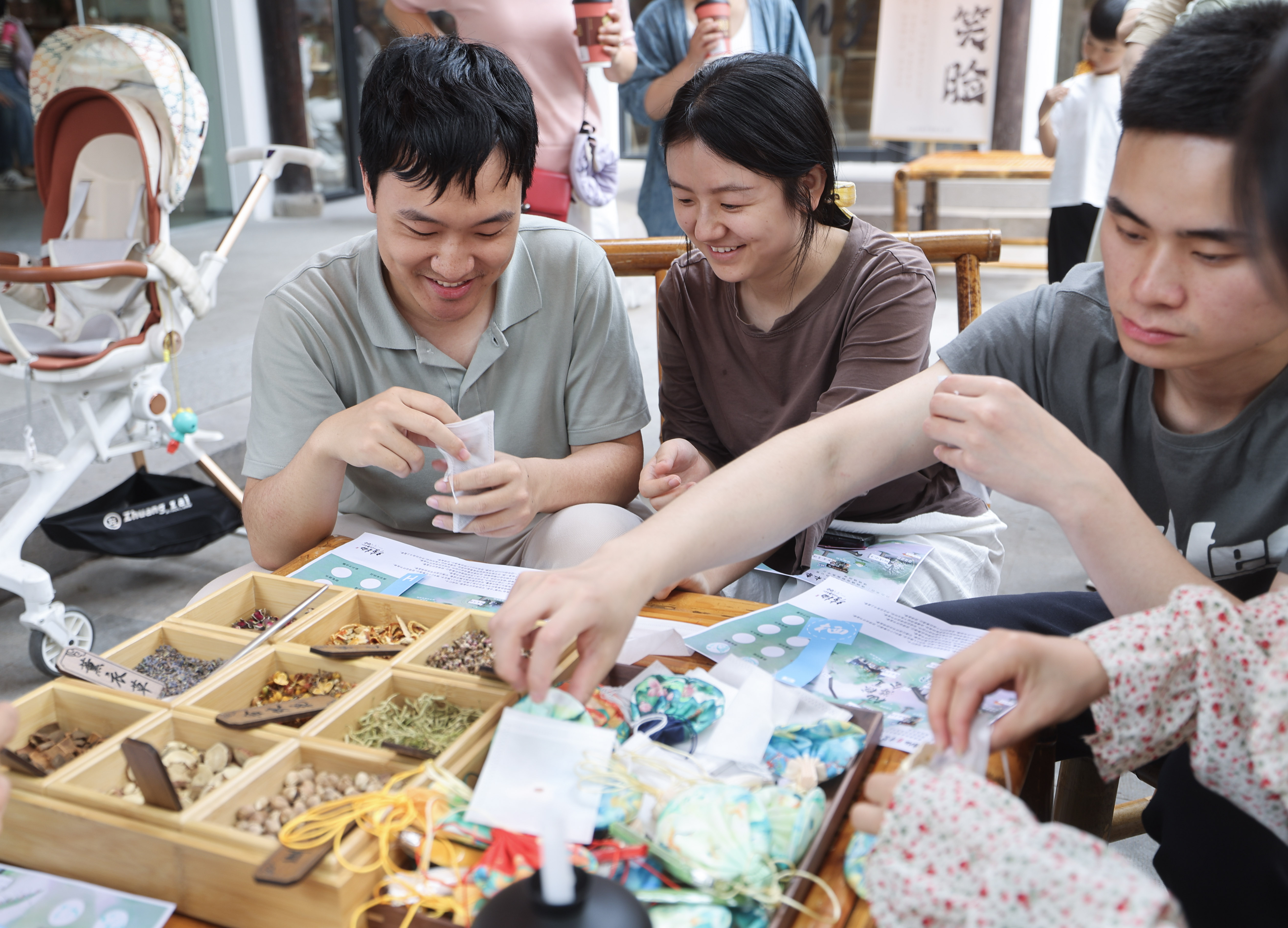 5月25日,浙江省杭州市临平区塘栖镇举办“栖才相约”之端午“粽夏‘栖’游会”,吸引辖区30位单身青年人才共赴这场“文旅+非遗+社交”的沉浸式体验之旅。活动搭建起互动交流的平台,让年轻人一起参加非遗美食手绘、中药香囊制作、包粽子、写扇面、猜字谜等趣味打卡任务,增进协作情谊、感受民俗魅力,推动青年人才干在塘栖、留在塘栖、爱在塘栖。