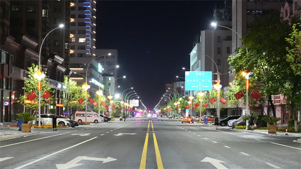 该工程聚焦出入境交通需求,通过优化道路横断面布局,全线改造3.34公里,扩宽主车道路面宽度,渠化机动车辆与非机动车辆交通,取消原有人行道上的停车位,实行人车分离,慢行交通环境大大改善。对道路系统进行全方位升级,车行道改造6.58万平方米,同步规划建设296个停车位,较比改造前增加20%,道路承载能力与通行效率显著提升。人行道改造联动升级,采用彩色沥青与仿石砖双材质铺装,其中1.04万平方米彩色沥青以鲜明色彩划分慢行区域,1.51万平方米仿石砖强化防滑耐磨功能;220盏节能型路灯的安装,不仅实现了夜间照明全覆盖,还兼具实用性与美观性,切实保障车辆及行人安全。