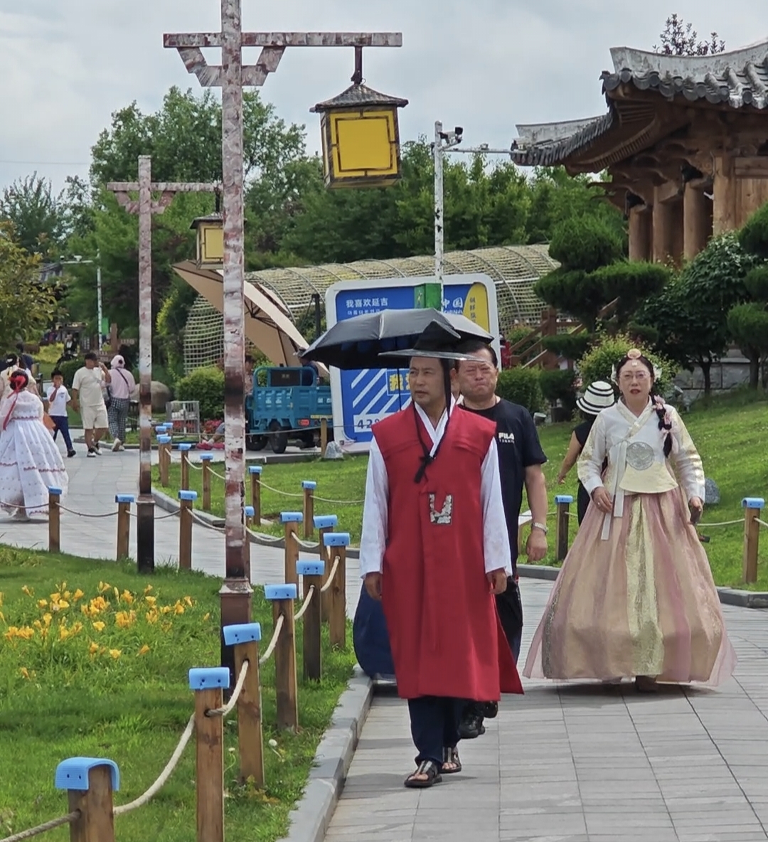 7月2日,中国朝鲜族民俗园里热闹非凡,来自全国各地不同民族的游客身着朝鲜族传统服饰,在黛瓦白墙、飞檐翘角的传统建筑前拍照打卡,体验朝鲜族传统文化独特魅力的同时,不同民族的文化也在互动中碰撞出温暖的火花,让帽儿山脚下的这座园区成为各民族交往交流交融的生动舞台。