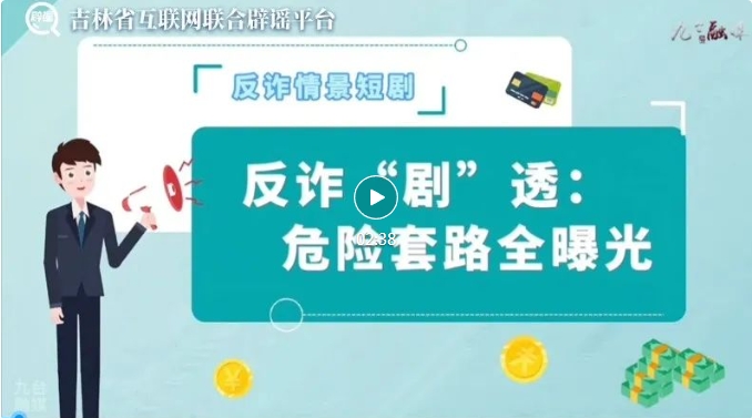 《吉林辟谣短剧场》栏目依托吉林省网络辟谣联动机制,积极联动相关单位、网络媒体、网络大V定期推出原创辟谣短剧,发挥东北方言魅力,用通俗易懂的剧情为公众呈现谣言引发的故事,揭露常见谣言套路,引导群众自觉形成不信谣、不传谣、不造谣的观念。