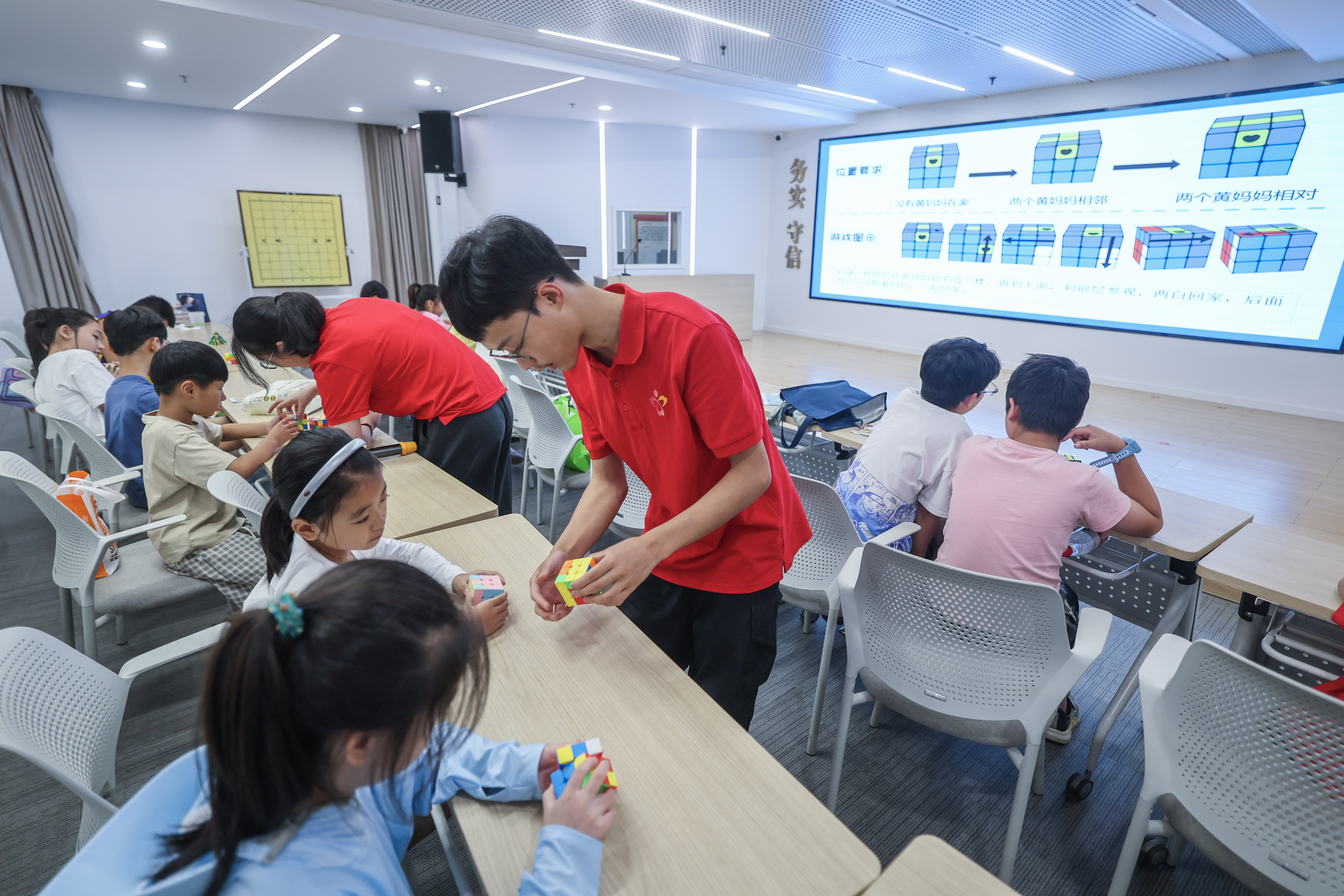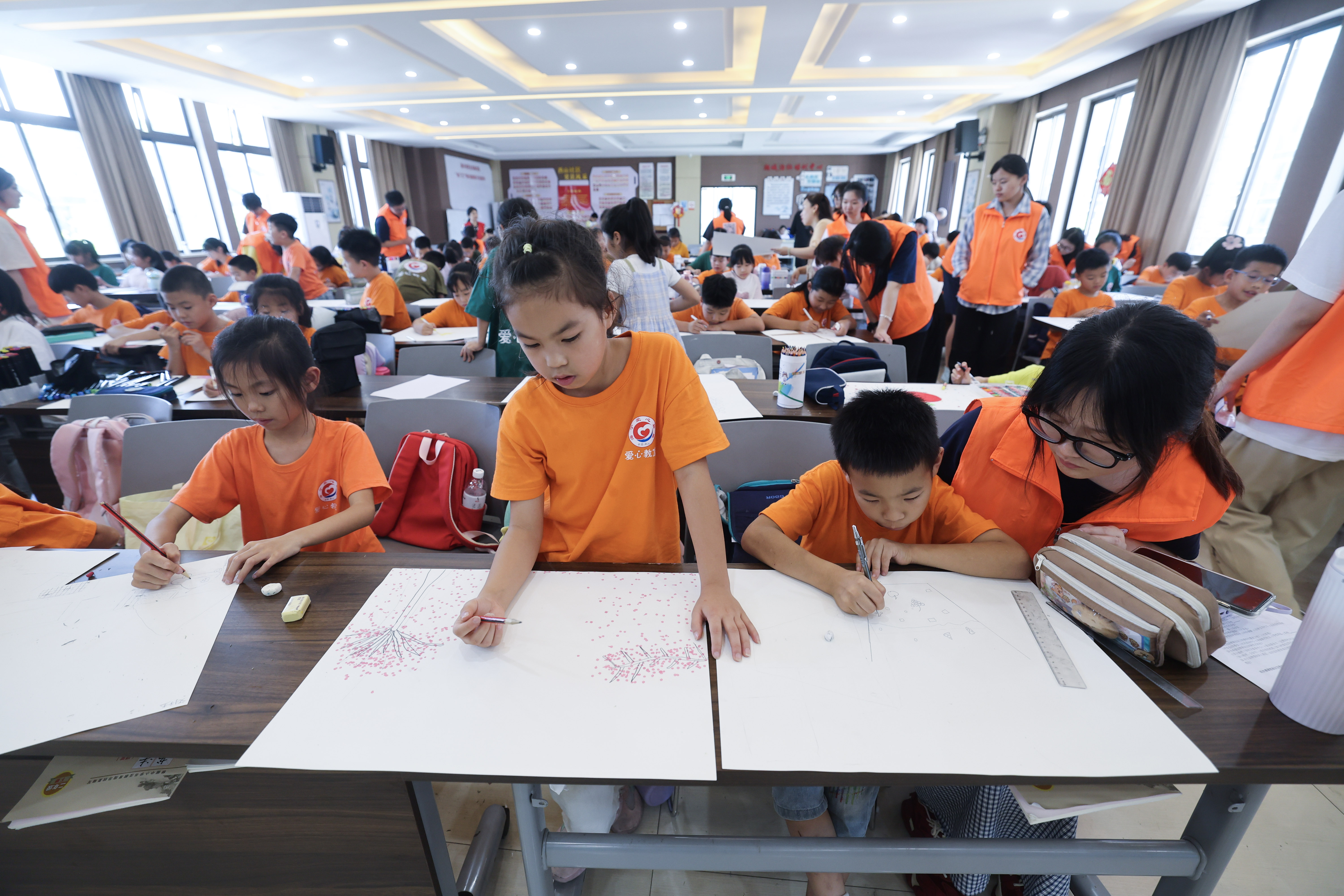 暑假期间,浙江省嘉兴海宁市硖石街道西山社区党群服务中心开启暑期“爱心教室”,课程包括绘画、书法、阅读、手工以及作业辅导等。150余名幼儿园及小学的孩子由大学生志愿者和社工陪伴,开启为期45天的暑期成长之旅。