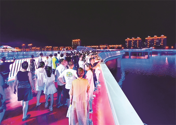 每日18时开始的歌友会,用音乐唤醒城市之夜。18时至21时,舞台演艺区、酒水美食品鉴区、动感电音巴士、氛围打卡区四大主题区域火力全开,近千人于此共赴夏夜狂欢。8月2日至3日,首届“海兰明珠音乐派对”将把夜游推向高潮。