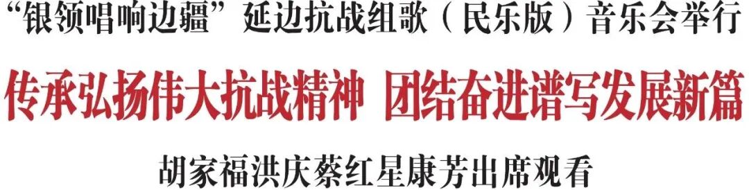 9月7日,“银领唱响边疆”延边抗战组歌(民乐版)音乐会在延边工人文化宫举行。省委常委、州委书记胡家福,州委副书记、州长洪庆,州人大常委会主任蔡红星,州政协主席康芳等领导同全州干部群众代表齐聚一堂,在激昂旋律中缅怀革命先烈、汲取奋进力量。