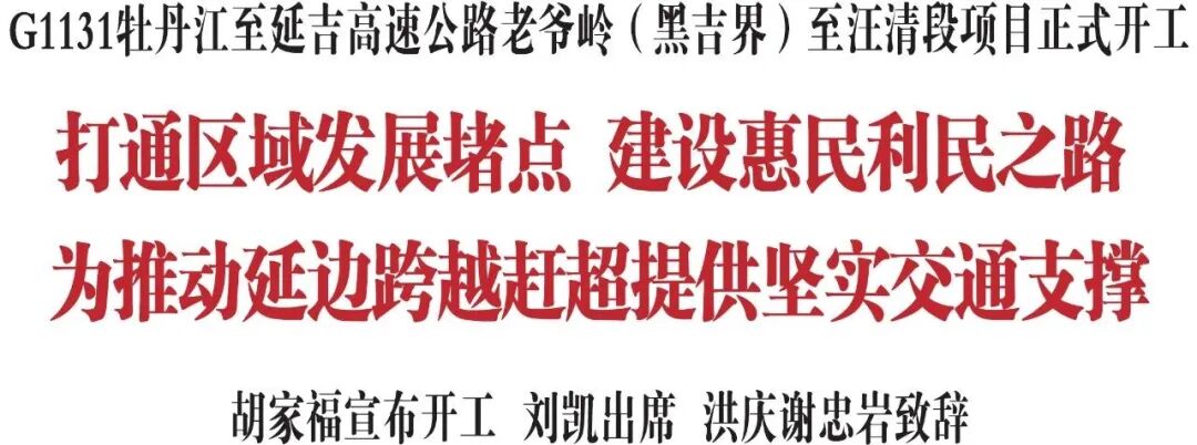 9月8日,G1131牡丹江至延吉高速公路老爷岭(黑吉界)至汪清段项目正式开工。省委常委、州委书记胡家福出席开工活动并宣布开工。副省长刘凯出席开工活动。州委副书记、州长洪庆,吉林省高速公路集团有限公司党委书记、董事长谢忠岩出席开工活动并致辞。