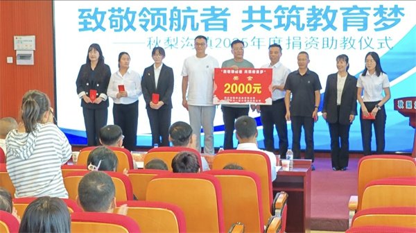 近日,敦化市秋梨沟镇党委、政府联合敦化市翔农禽业有限公司和敦化市天一堂大药房有限公司在秋梨沟镇学校会议室开展“致敬领航者,共筑教育梦”2025年度捐资助教仪式,为一线教师送上教师节祝福。