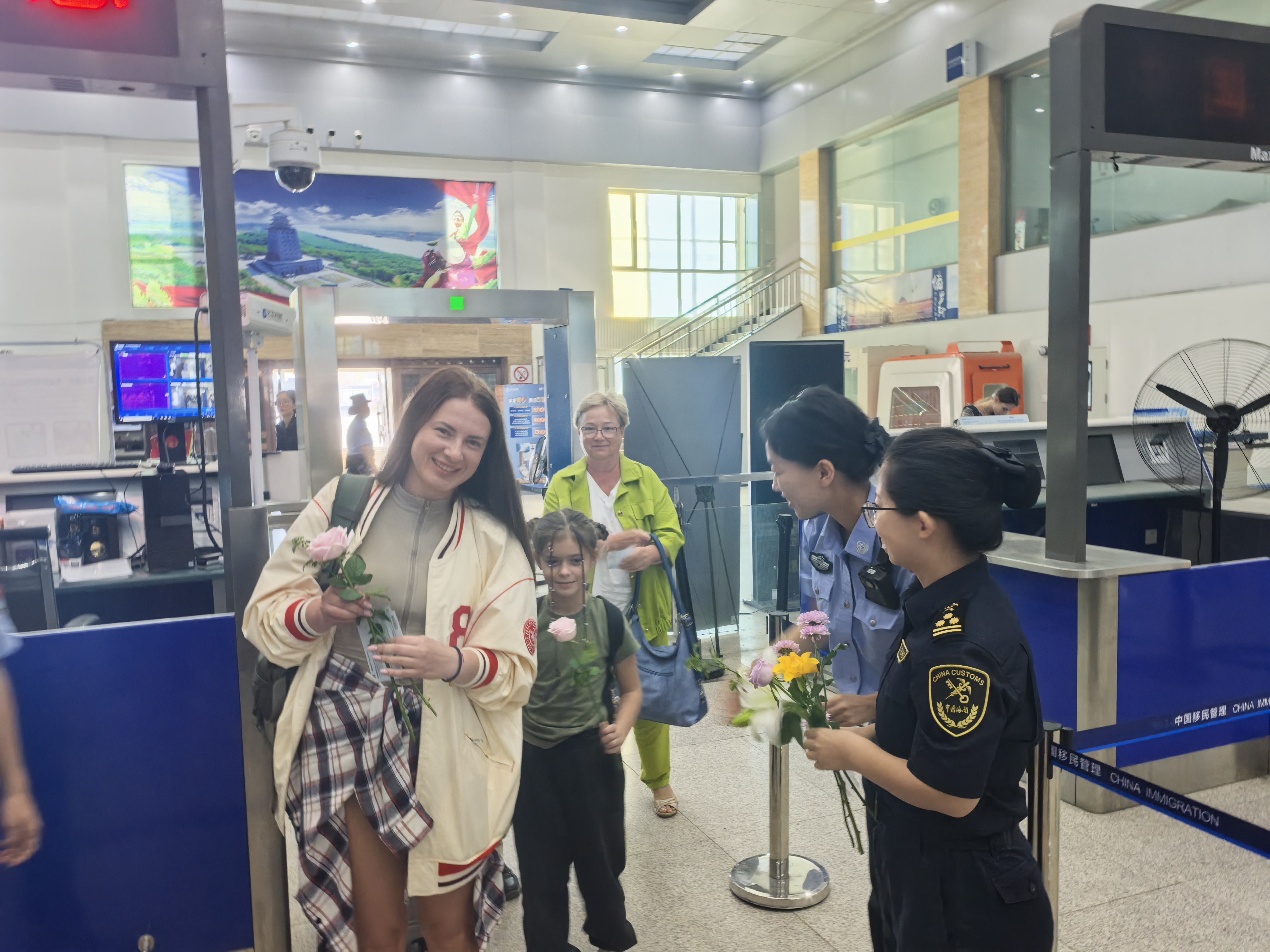 为保障政策顺利落地,珲春出入境边防检查站提前完善勤务预案,科学调配执勤警力,在口岸现场专门设置了免签人员专用通道;同时,选派俄语水平过硬的民警担任台外引导员,为俄罗斯旅客提供外语翻译、政策咨询、协助填写入境卡片等服务,全力确保旅客高效、顺畅通关。