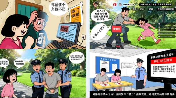 炮制剧本、虚构场景、摆拍视频……从“卖惨助农”到“制造对立”,打造虚构的暴力冲突吸引流量进行带货;为彰显个性博取关注,发布低俗、有违社会公序良俗的引流视频;随意捏造散布虚假不实信息,影响正常群众生产经营。网络并非法外之地。公安网安部门深入开展“净网-2025”专项工作,严打网络违法犯罪,近日公布相关违法典型案例。