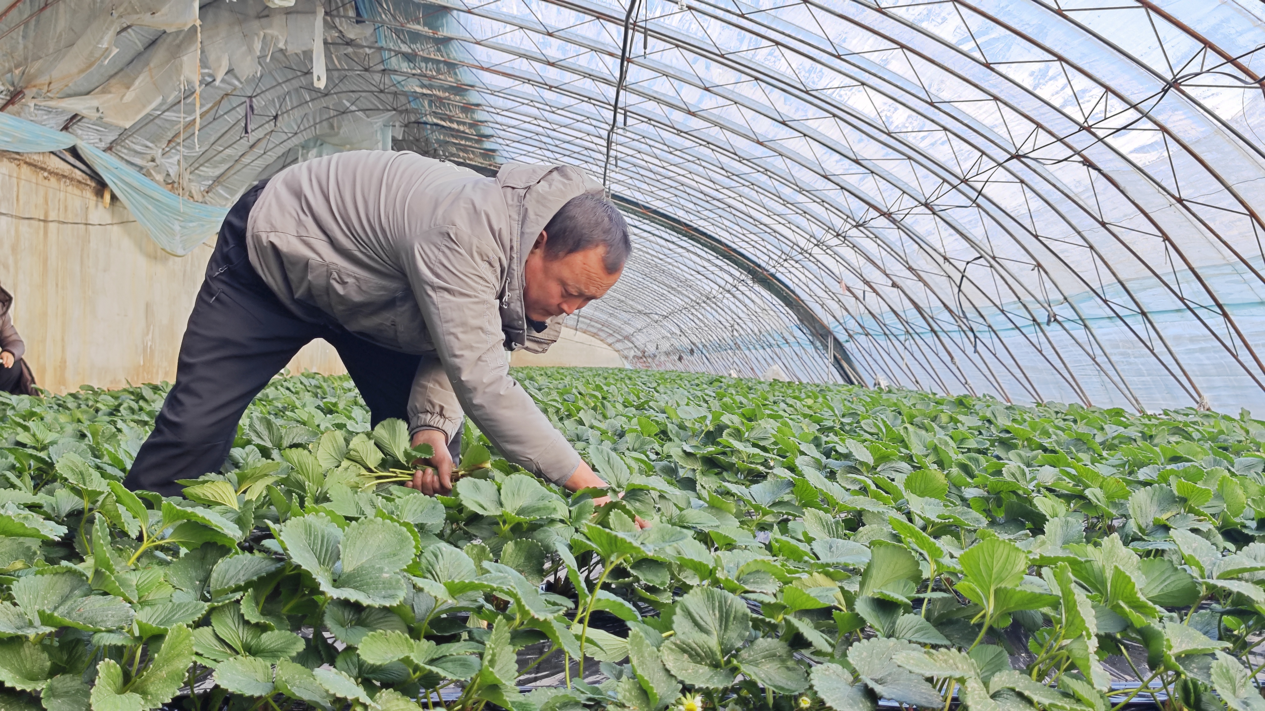 走进村民王洋的草莓大棚,一垄垄覆盖着黑色地膜的草莓苗格外亮眼:叶片呈浓郁的墨绿色,株型粗壮挺拔,洁白的小花点缀在藤蔓间,透着蓬勃的生命力。“11年前我从磐石搬到珲春,就看中了这儿的气候和东岗子村的土壤,特别适合草莓生长。”正在田间打理草莓的王洋笑着向记者介绍,这座大棚长100米、宽8米,总面积800平方米,为了保障草莓品质,棚内温度严格把控,白天不超过32℃,夜间不低于-8℃,同时采用蜜蜂授粉技术。“再过一个月草莓就能上市,这个棚预计产3000公斤左右,毛收入能有七八万元。”王洋说,他目前共经营6个草莓大棚,今年总收入将超过40万元。随着种植规模扩大,他还常年雇佣本村村民务工,平时有五六人,农忙时最多能到十多人。“东岗子村是块好地方,我年年都能挣到钱。”不仅自己扎根于此,王洋还带动10多名亲戚朋友从外地迁来珲春,一起投身草莓种植,共享产业发展红利。