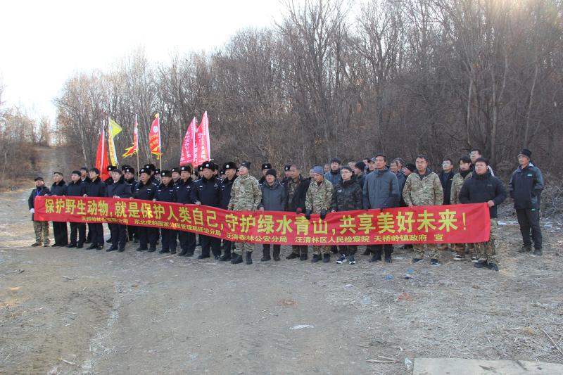 为做好东北虎豹及栖息地的保护工作,严厉打击非法盗猎行为,切实保护野生动物资源安全,11月19日,省公安厅森林公安局汪清森林公安分局联合天桥岭林业有限公司、东北虎豹国家管理局延边分局、汪清林区人民检察院、汪清林区基层法院、天桥岭镇人民政府,在天桥岭东北虎豹文化广场隆重举行保护东北虎豹及其栖息地暨2025年至2026年清山清套反盗猎专项行动启动仪式。