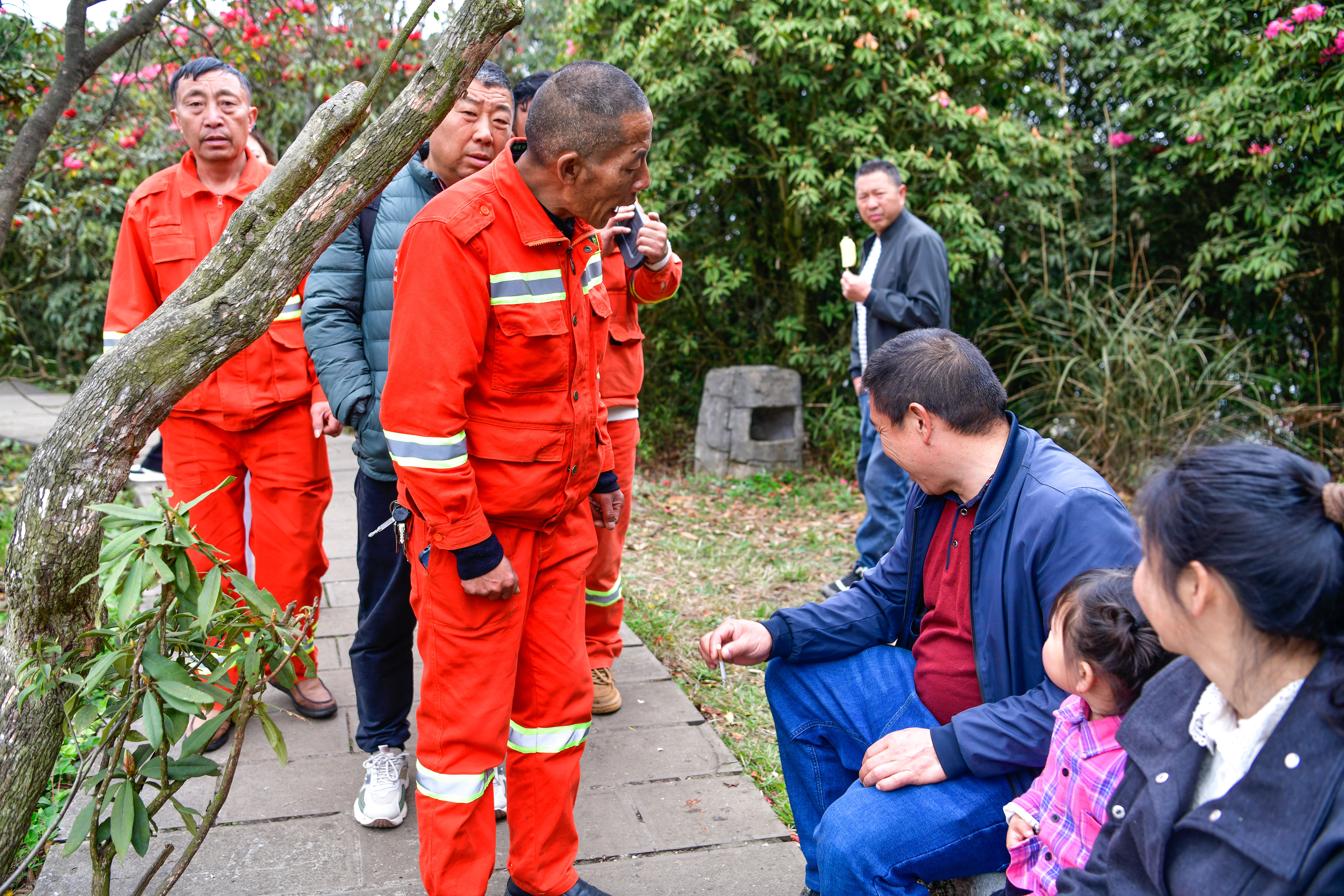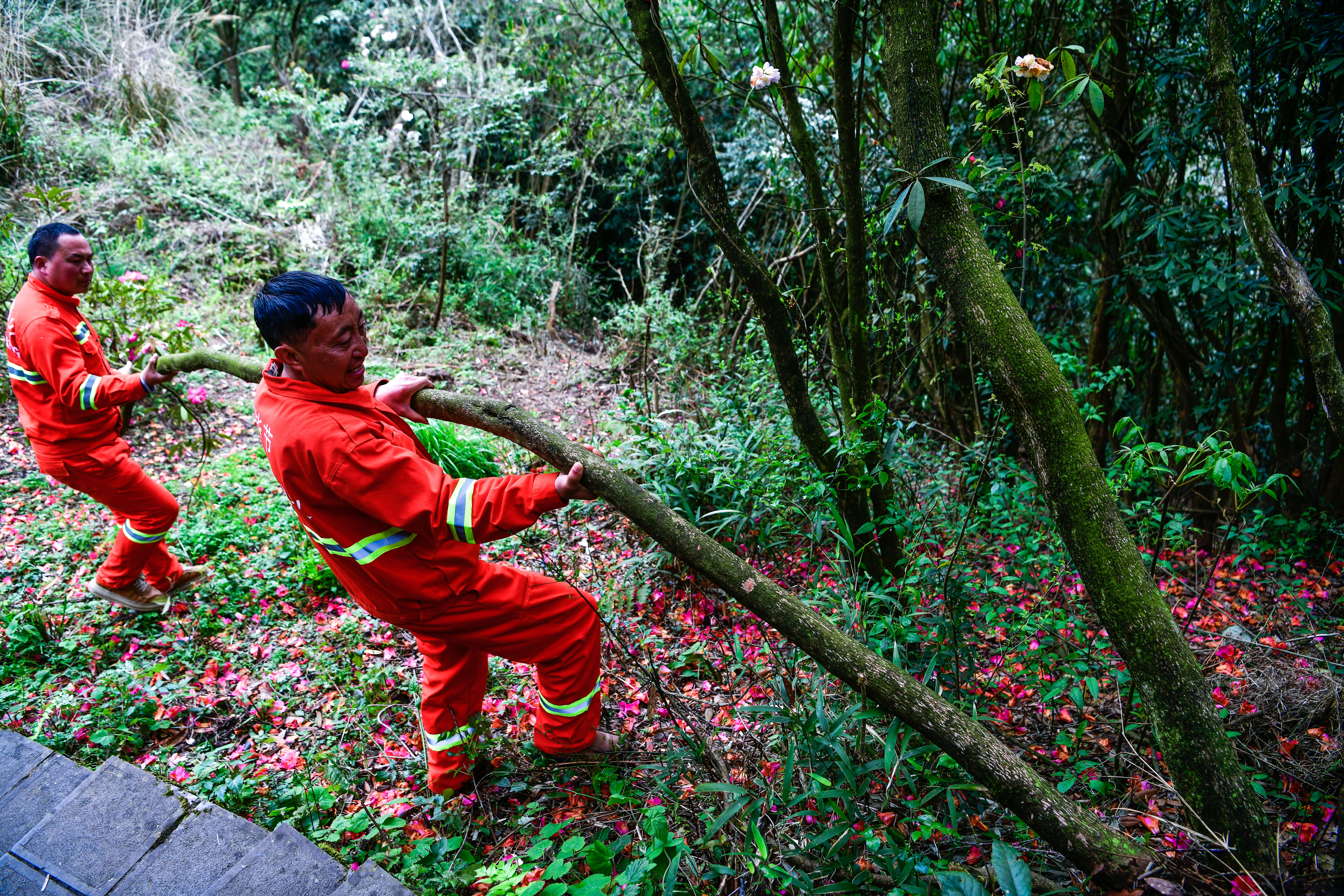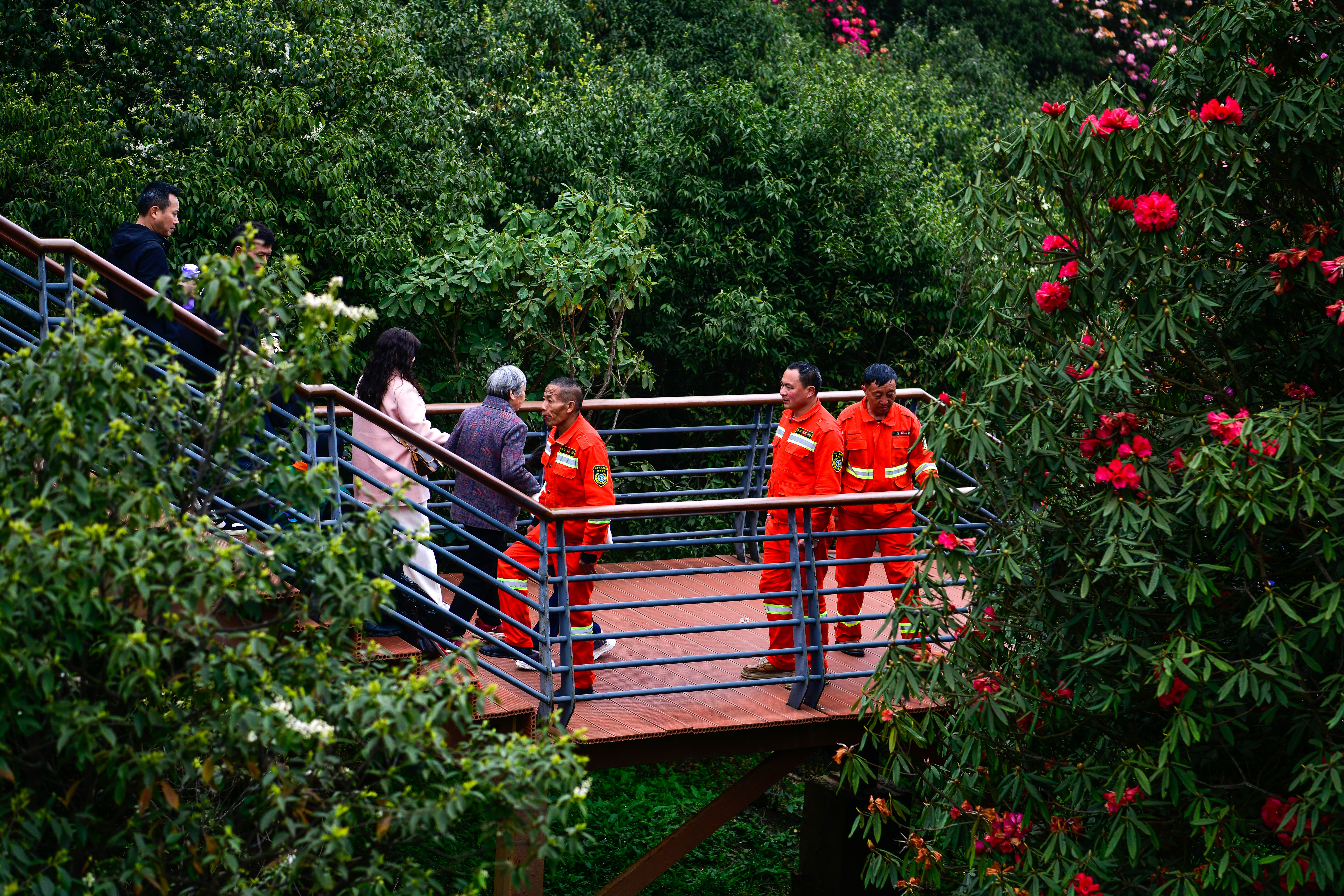 从2008年以来,百里杜鹃管理区管委会常年聘请专职森林防火队员45人,负责林区火灾隐患排查、森林病虫害防治、制止盗挖盗采等工作。18年来,无论风吹雨淋,严寒酷暑,森林防火队员们每天在林海山间值守巡查,在有“地球彩带,世界花园”之称的景区守护杜鹃花开。