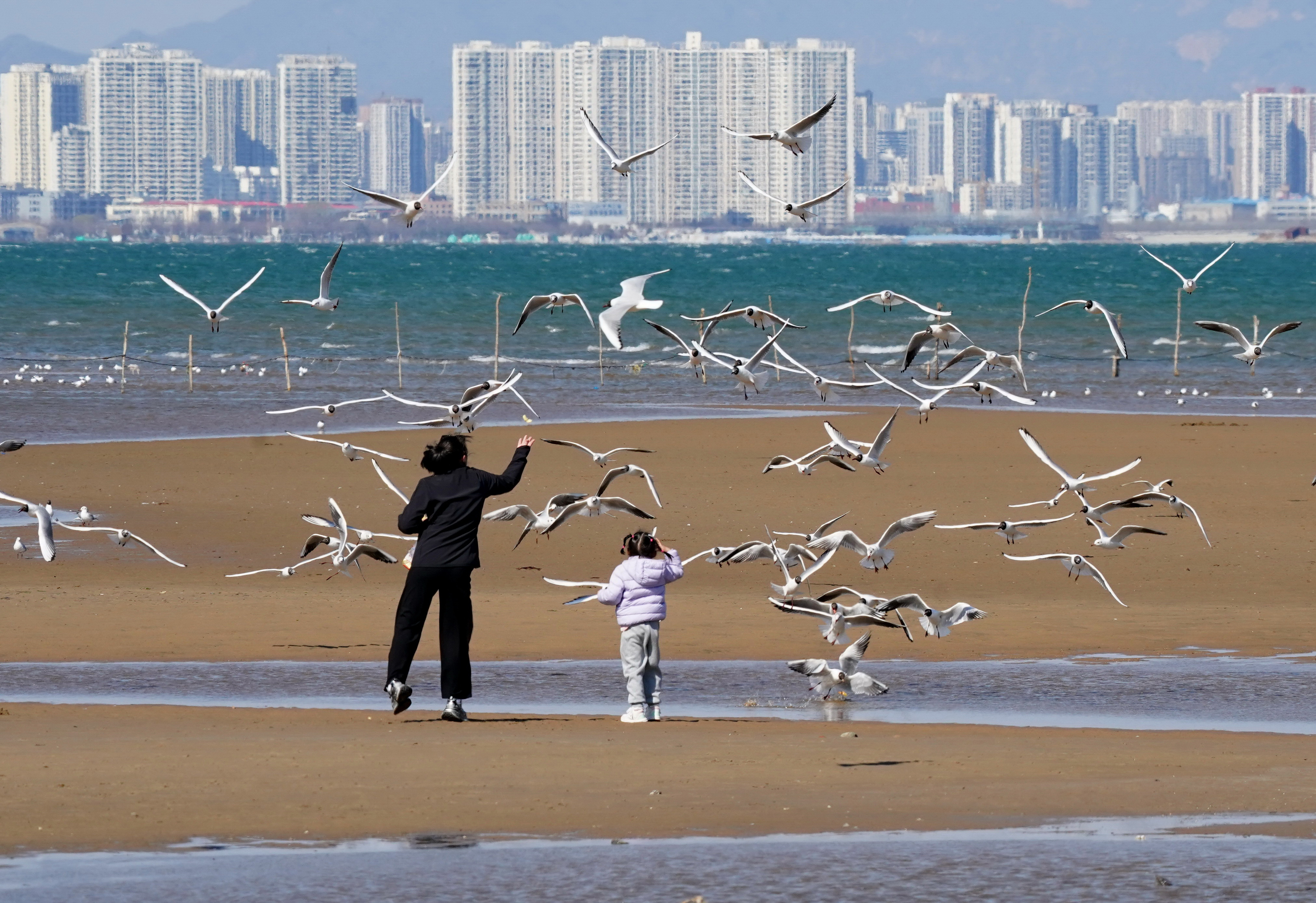 近日,大批海鸥聚集于河北省秦皇岛市北戴河区沿海地区,在蓝天碧海间起舞。