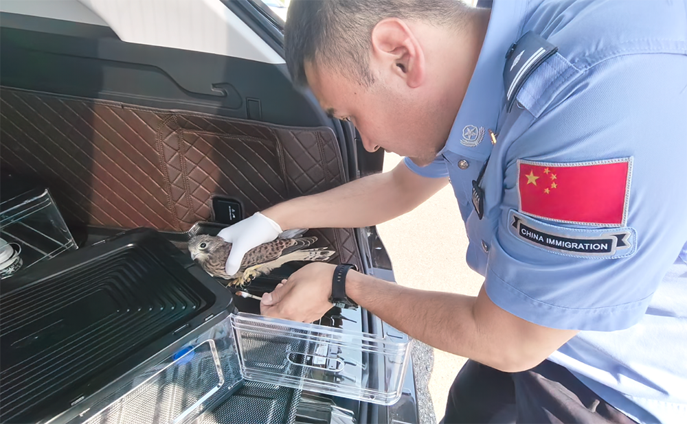 边检站民警救助国家二级保护动物红隼