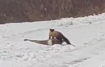 和林职工拍下四只黄喉貂围猎狍子的视频影像