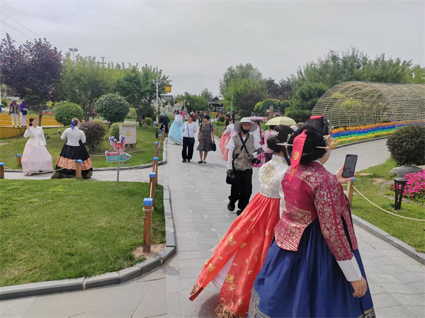 延吉:民俗园内游客沉浸式体验非遗魅力