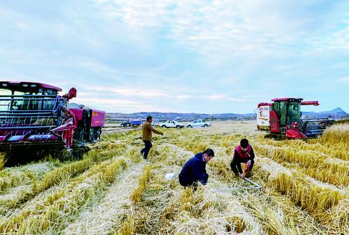 龙井市农机总站组织技术人员深入田间开展机收减损监测调查工作