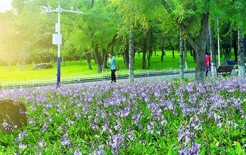 延吉市人民公园内的玉簪花竞相绽放