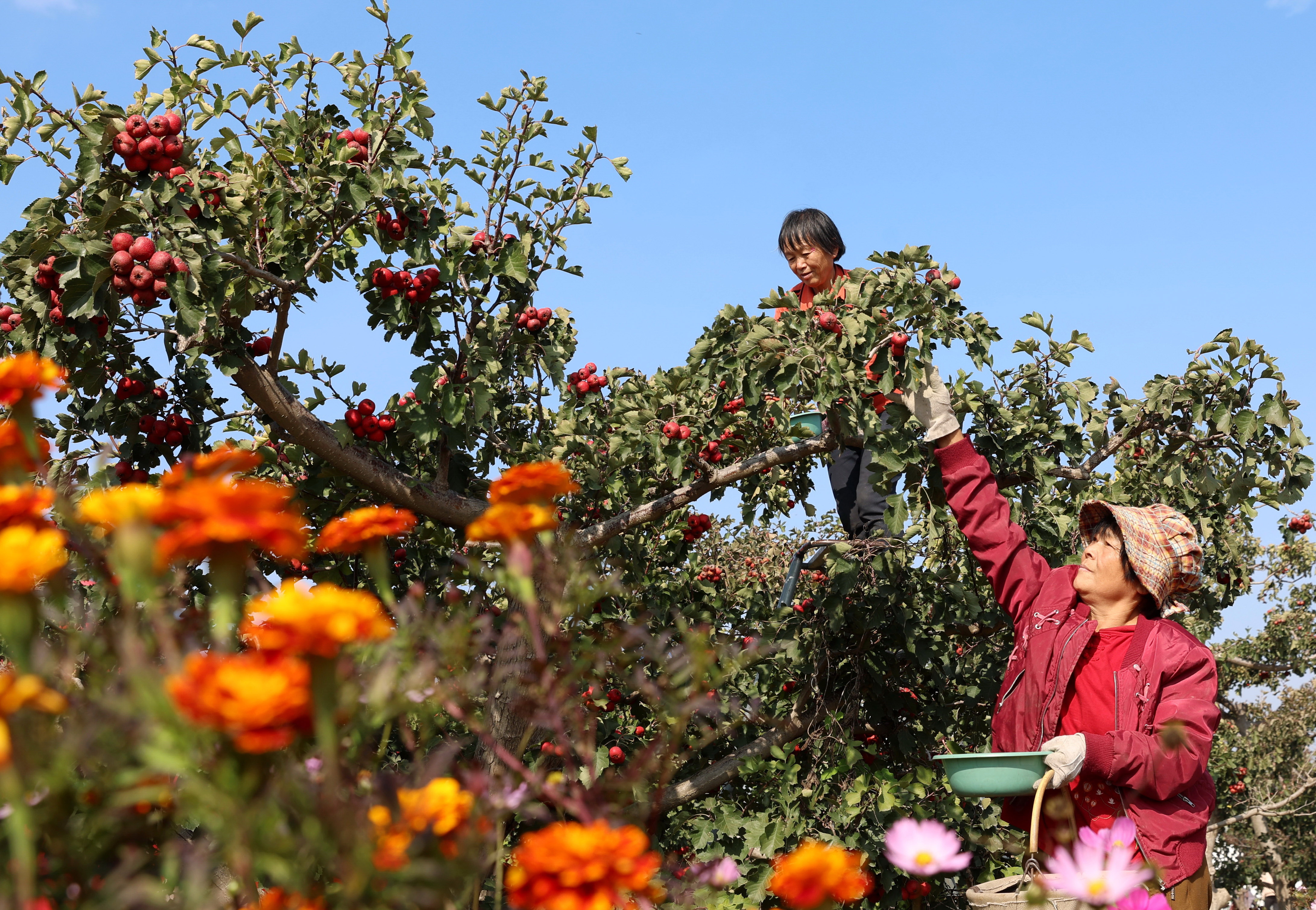 河北晋州:“红果”压枝弯 果农笑颜开