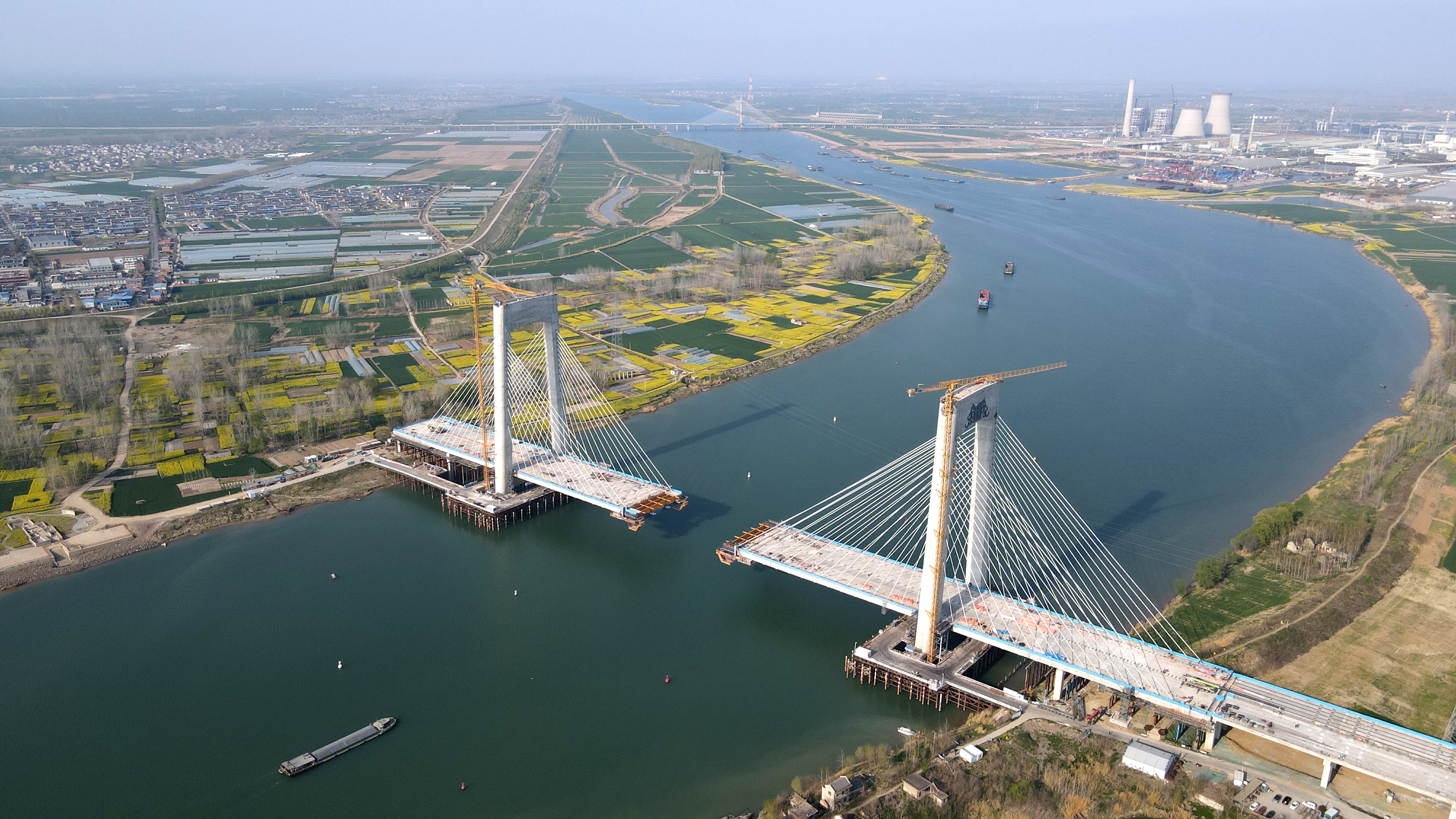跨淮河大桥施工“加速跑”