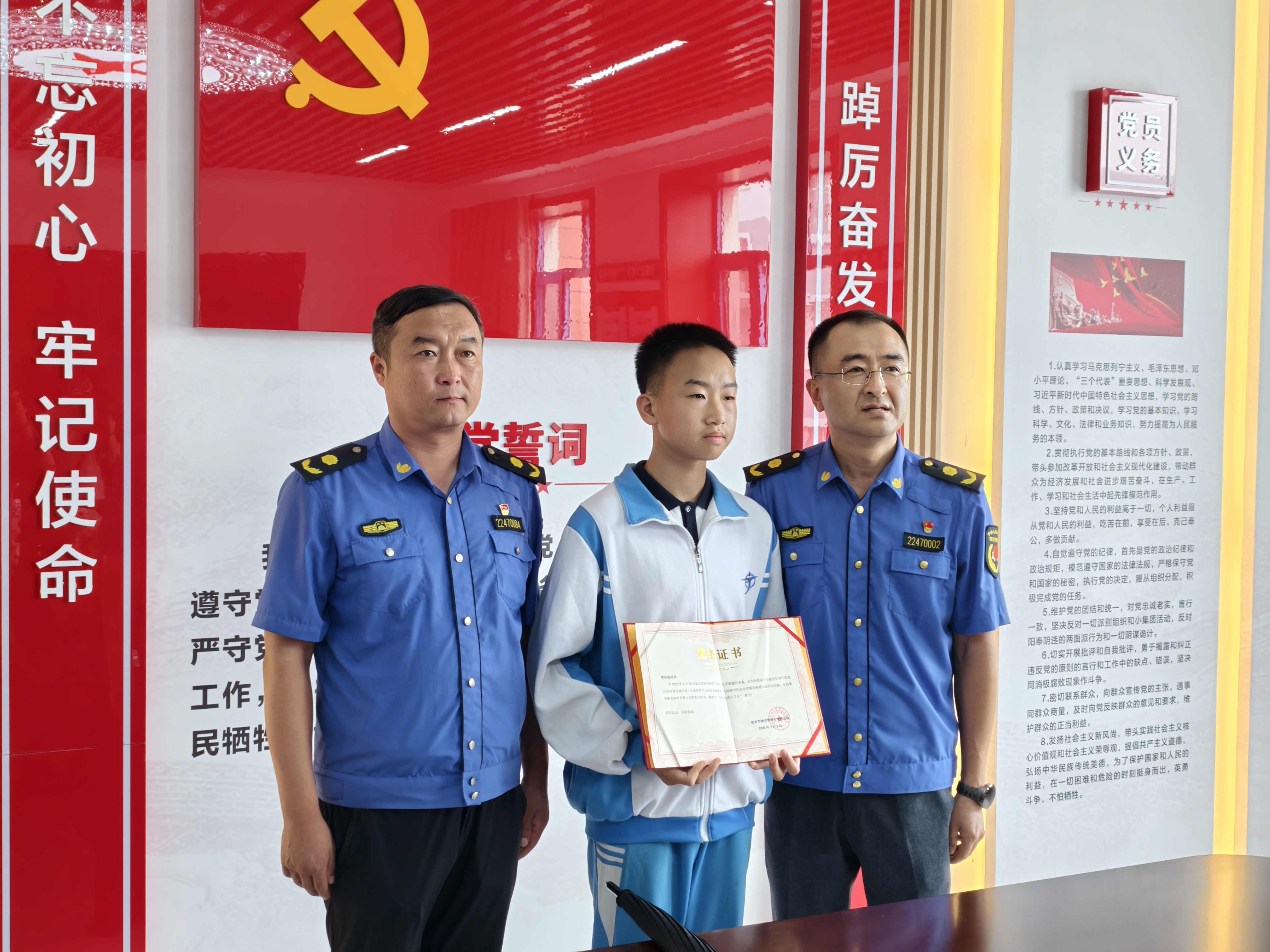 少年雨中徒手清淤 点亮城市温暖之光 延吉市为学生塔传程颁发"排洪防涝小卫士" 荣誉证书