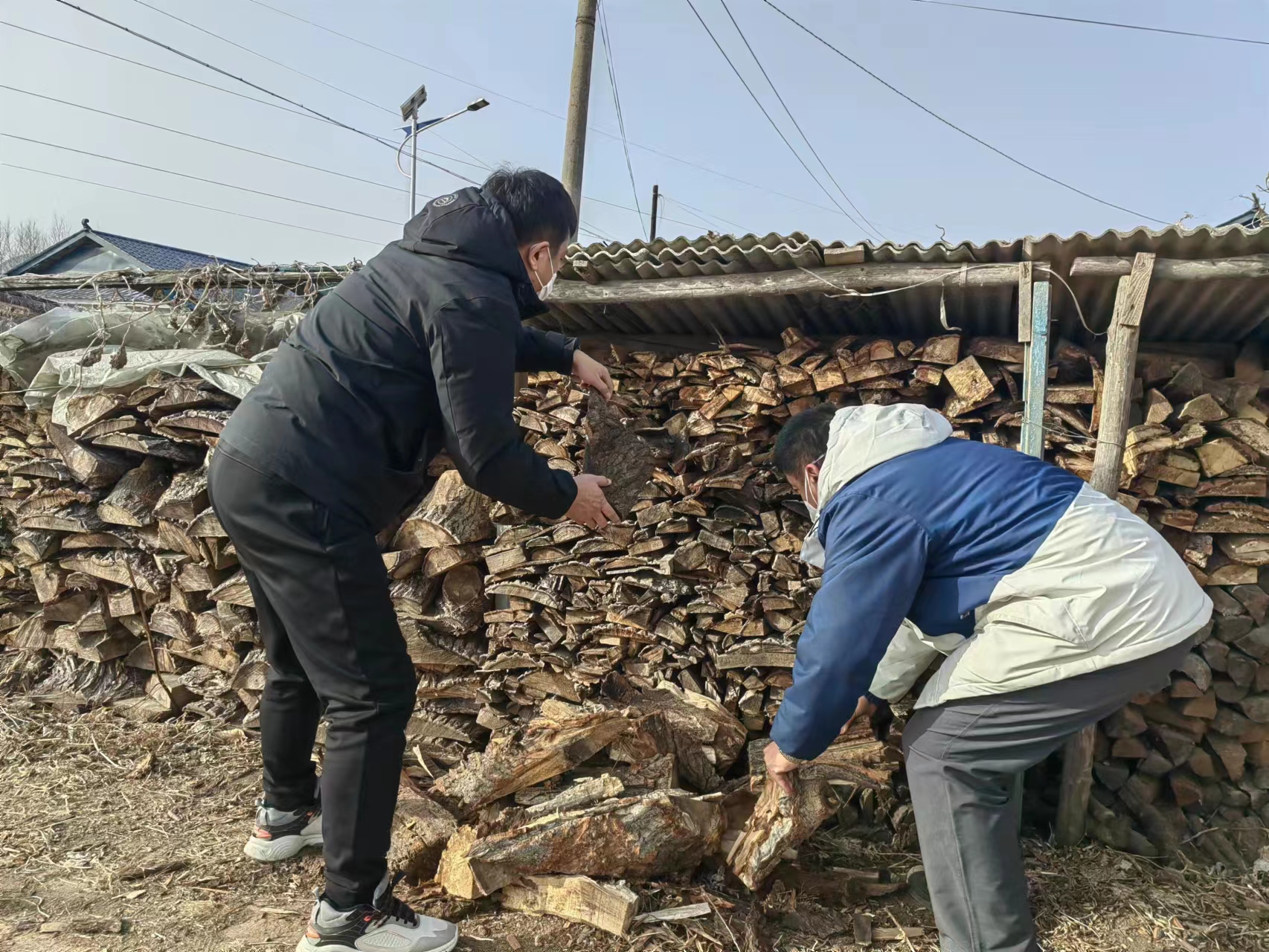 当日上午11时许,于增利和李永生带上医疗服务包,来到因病致贫的董春燮家走访。董春燮出生于1951年,身患肝病多年,老伴也体弱多病,他们家是已经成功脱贫的精准扶贫户。于增利和李永生为老人送来了医疗服务包后,聊起了家长,询问家中年货的置办情况,子女是否回来过年,并提前给老人拜年。随后,二人又来到脱贫户崔昌律家。崔昌律1942年出生,常年患有高血压、高血脂、糖尿病,老伴身患残疾。送完医疗服务包,他们嘱咐崔昌律少喝些酒,多注意用火等安全。二人看到院子内的烧柴不多,就动手帮着劈了一些烧柴,然后整整齐齐地码垛好,最后将小院打扫得干干净净才离开。