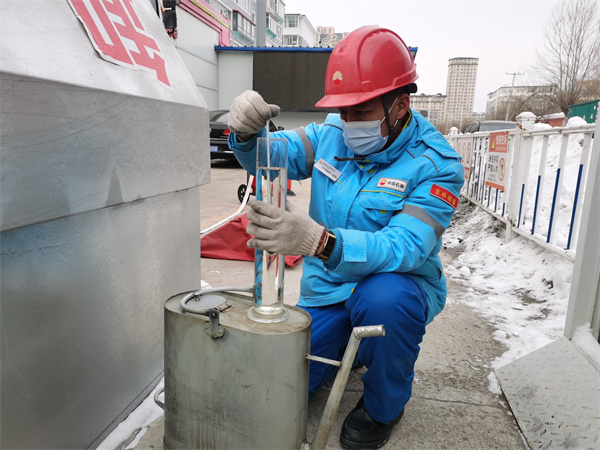 按照制度,在卸油前,需要对油品进行质量验收,衣乐带好安全帽,在油罐车卸油口接了汽油倒入量杯中,仔细观察汽油颜色、以手扇的方式闻汽油味道、测量汽油密度……经过一系列的流程确保油品质量后才开始卸油。“和头几年相比,今年春节的客流量有明显提高。”衣乐告诉记者,平时爱丹加油站每天的提枪量大约在500次左右,除夕当天截至13时,加油站提枪量就达到了500次,预计当日提枪量可达700余次。“疫情放开了,很多人选择春节出行,这对各行各业的经济发展,都有明显的促进作用。”